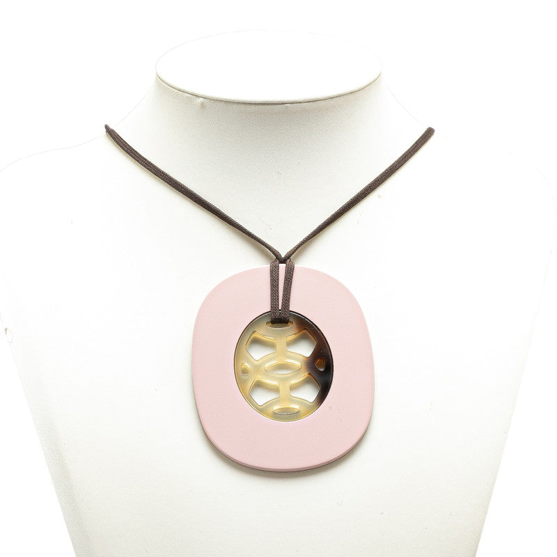 エルメス ネックレス ピンク ブラウン バッファローホーン ラッカーウッド レディース HERMES 【中古】