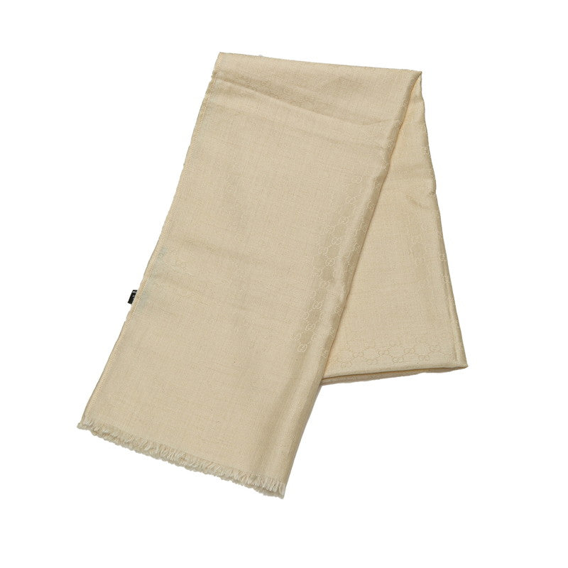 グッチ GG ストール ベージュ アイボリー カシミヤ シルク レディース GUCCI 【中古】
