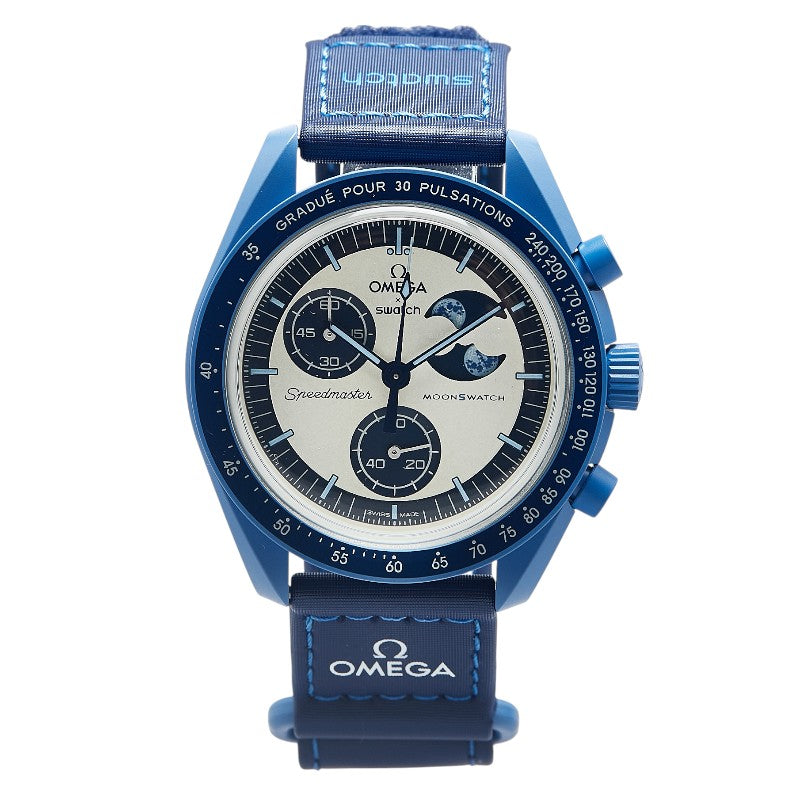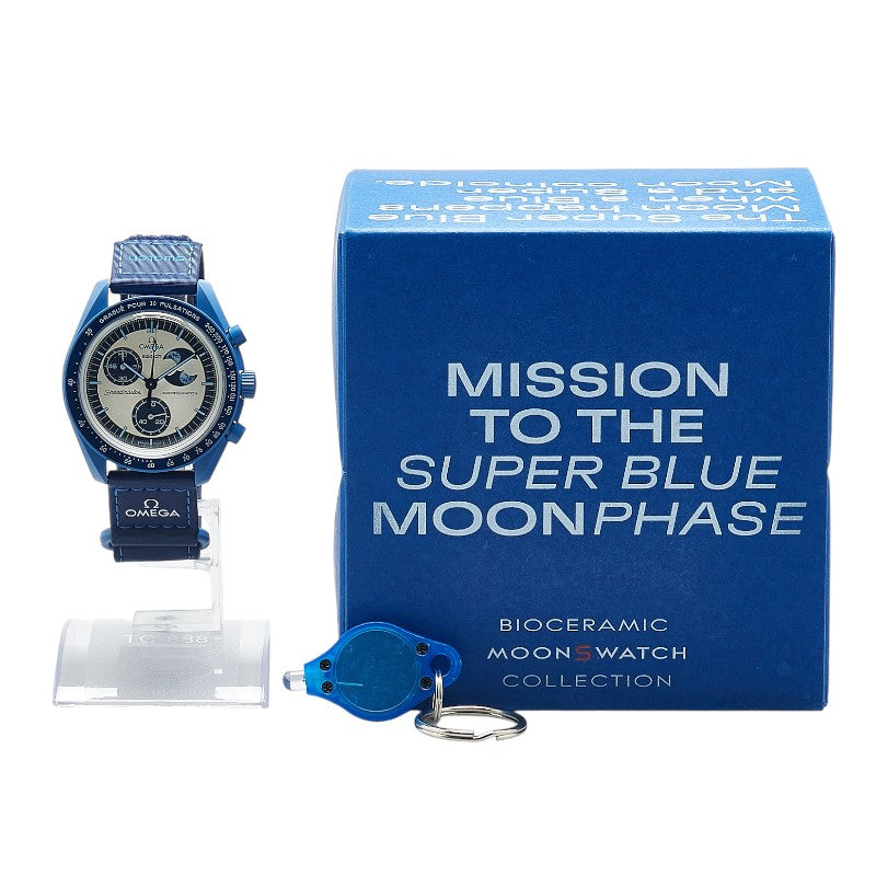 オメガ ×スウォッチ MISSION TO SUPER BLUE MOON ミッション トゥ ザ スーパーブルームーン 腕時計 SO33N700 クオーツ ホワイト文字盤 ナイロン バイオセラミック メンズ OMEGA 【中古】