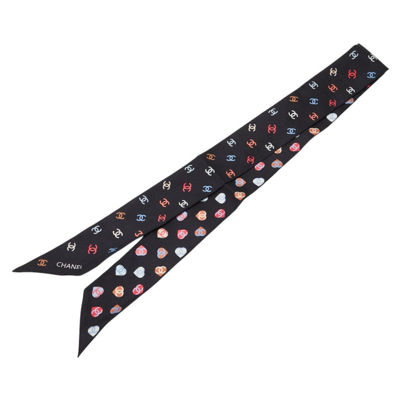 シャネル ツイリー ココマーク ハート モチーフ スカーフ ブラック マルチカラー シルク レディース CHANEL 【中古】