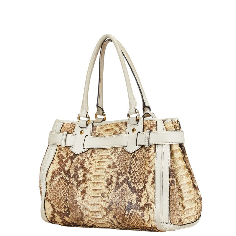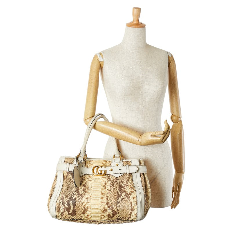 グッチ GGマーモント ヘビ風型押し ハンドバッグ トートバッグ 247183 ベージュ ブラウン パイソン レザー レディース GUCCI 【中古】