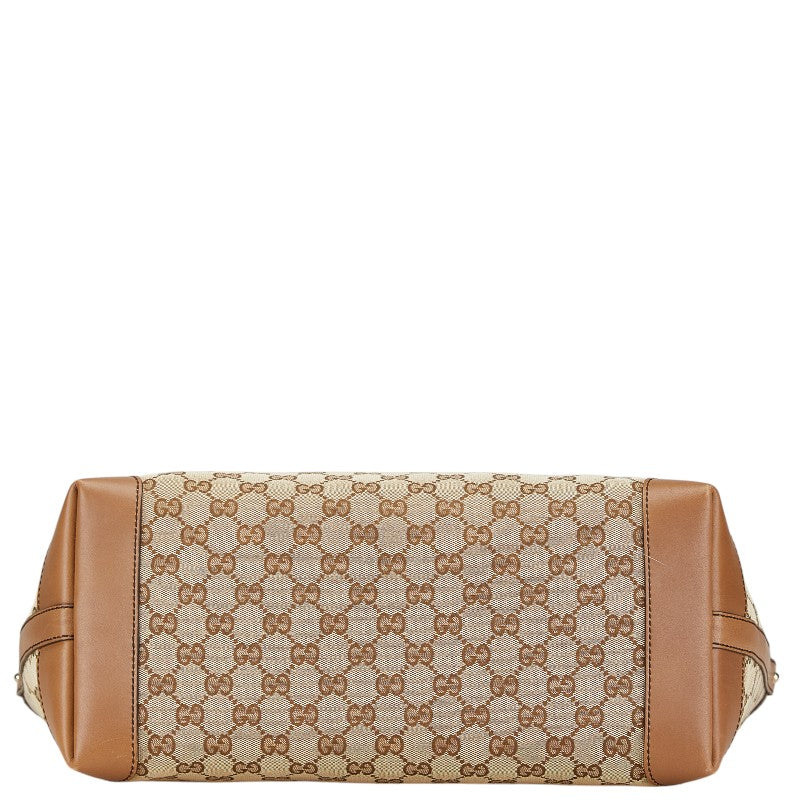 グッチ GGキャンバス トートバッグ ベージュ ブラウン キャンバス レザー レディース GUCCI 【中古】