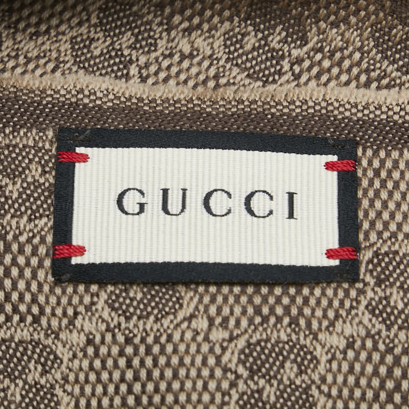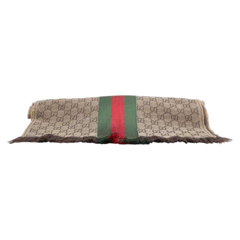 グッチ GG柄 シェリーライン マフラー 147351 ベージュ ブラウン ウール シルク レディース GUCCI 【中古】