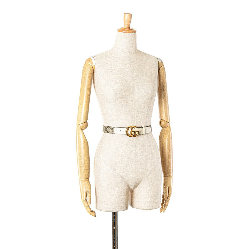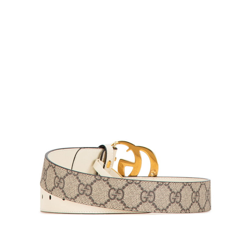 グッチ GGスプリーム ベルト 625839 ベージュ ホワイト レザー レディース GUCCI 【中古】