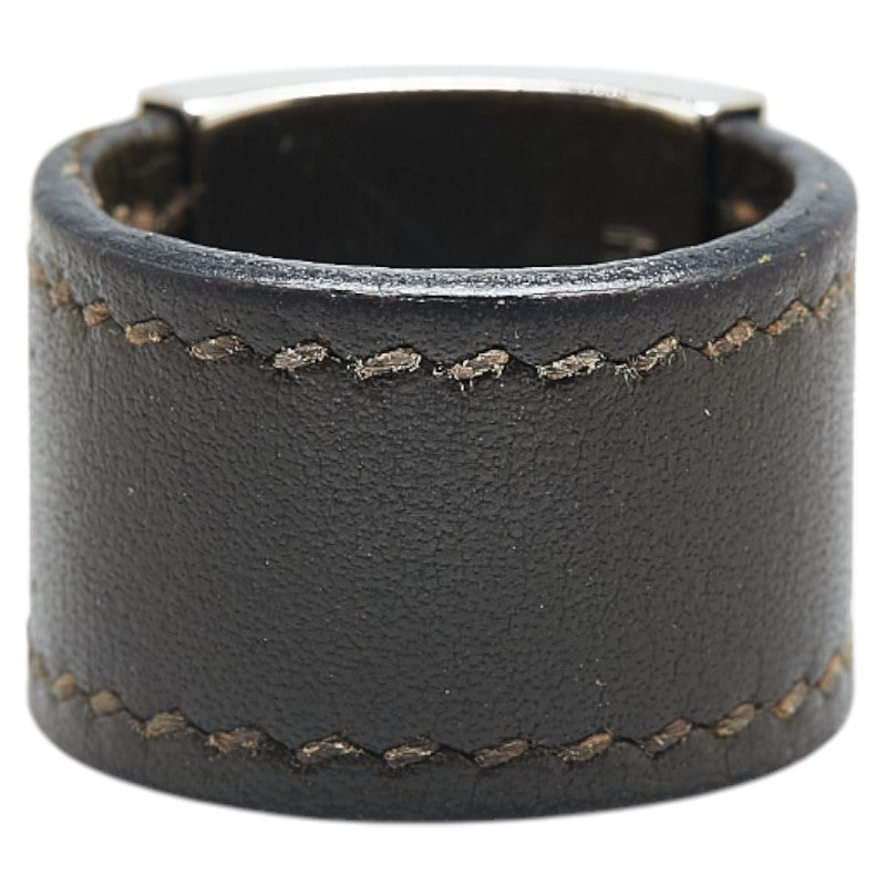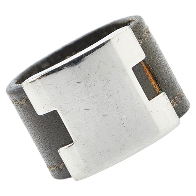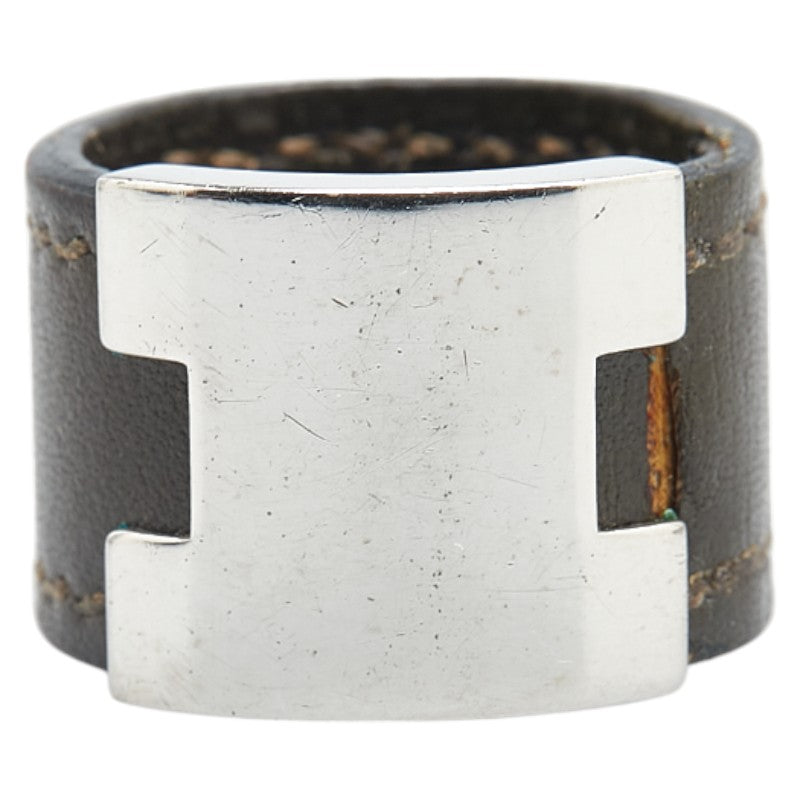 エルメス ルーリー リング 指輪 カーキ シルバー レザー メタル レディース HERMES 【中古】