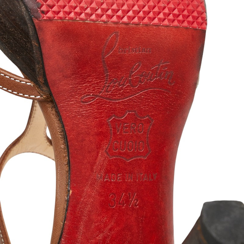 クリスチャンルブタン パンプス オープントゥ ハイヒール サイズ:34 1/2 ブラウン レザー レディース Christian Louboutin 【中古】