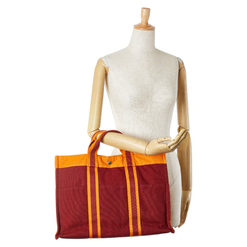 エルメス フールトゥ トートMM フレンチフェスティバル 2002年 ハワイ限定 トートバッグ ワインレッド オレンジ キャンバス レディース HERMES 【中古】