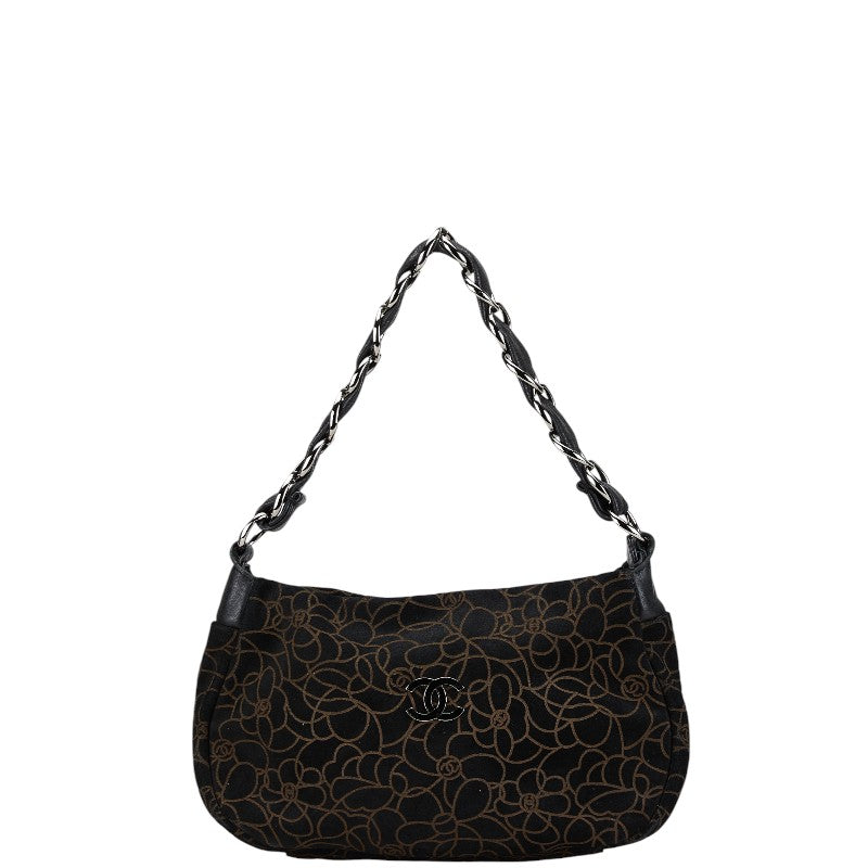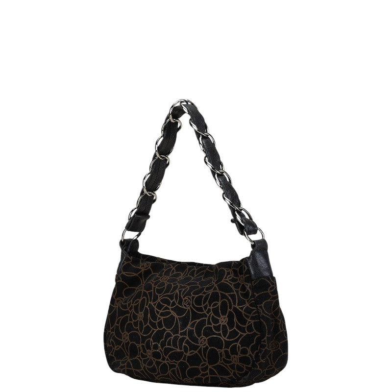 シャネル ココマーク カメリア フラワー ショルダーバッグ ブラック スウェット レディース CHANEL 【中古】