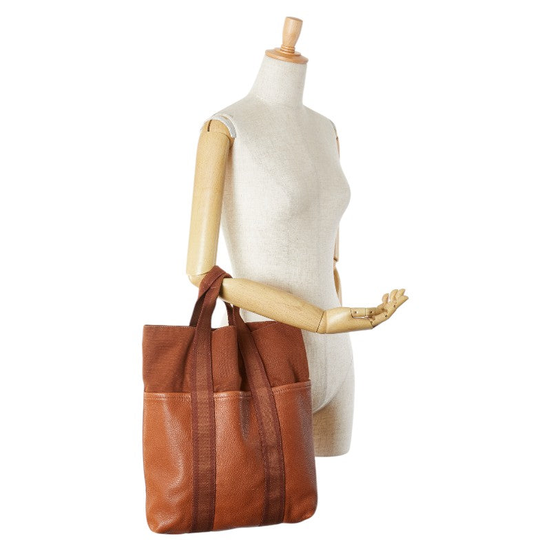 エルメス フールトゥ カバス ハーフレザー トートバッグ ブラウン キャンバス レザー レディース HERMES 【中古】