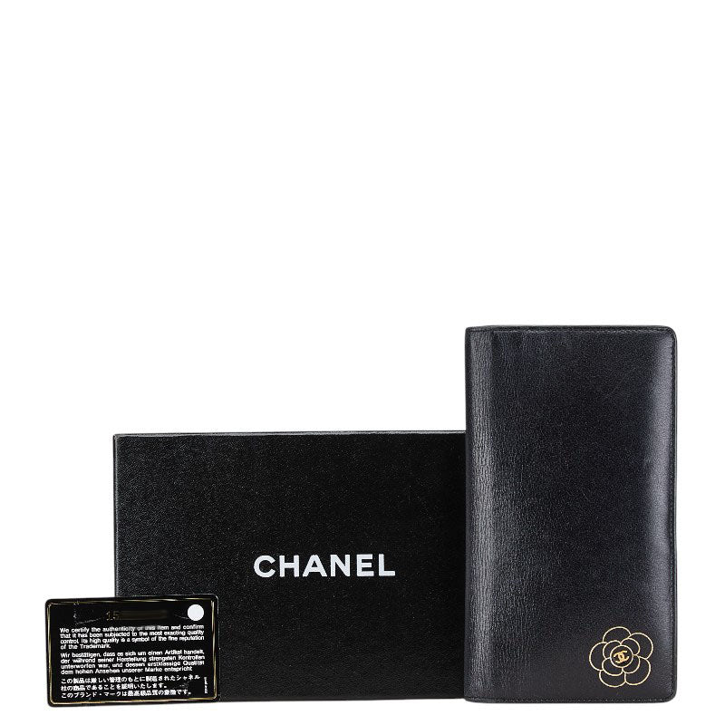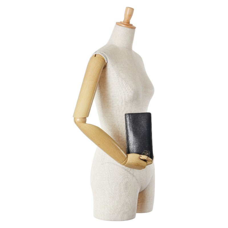 シャネル カメリア ココマーク 長財布 ブラック レザー レディース CHANEL 【中古】
