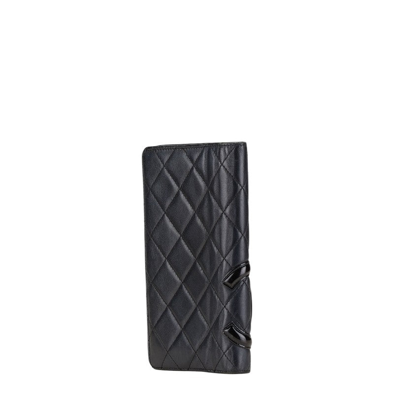 シャネル カンボンライン ココマーク 長財布 ブラック ラムスキン レディース CHANEL 【中古】