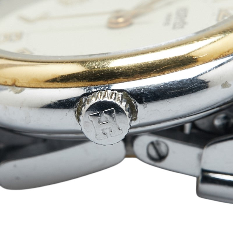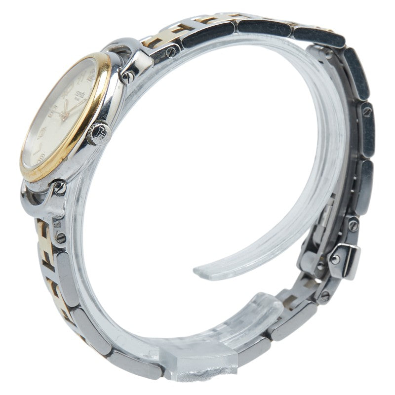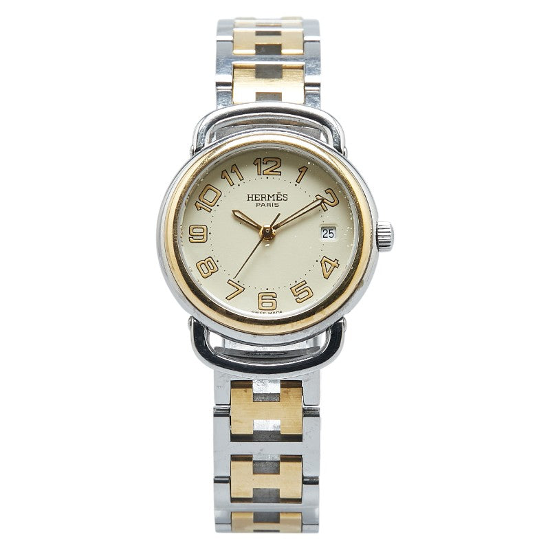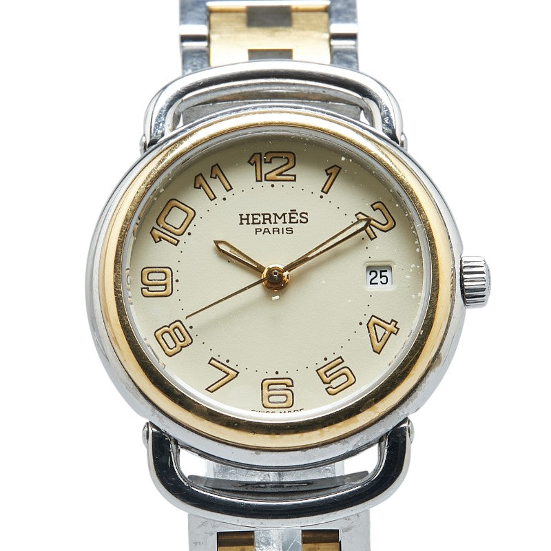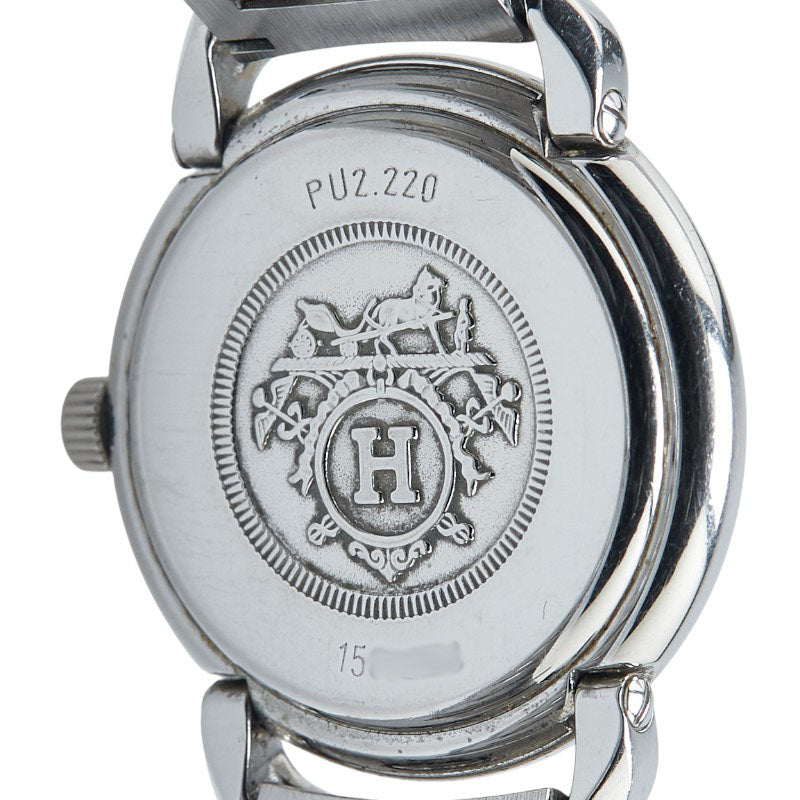エルメス プルマン 腕時計 PU2.220 クオーツ ベージュ文字盤 ステンレススチール メッキ レディース HERMES 【中古】