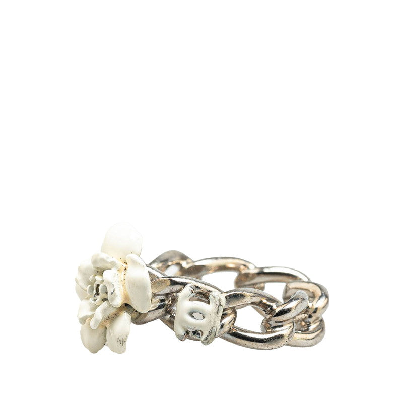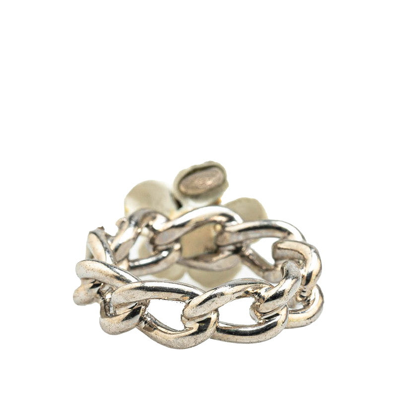 シャネル カメリア ココマーク チェーン リング 指輪 シルバー ホワイト メタル レディース CHANEL 【中古】