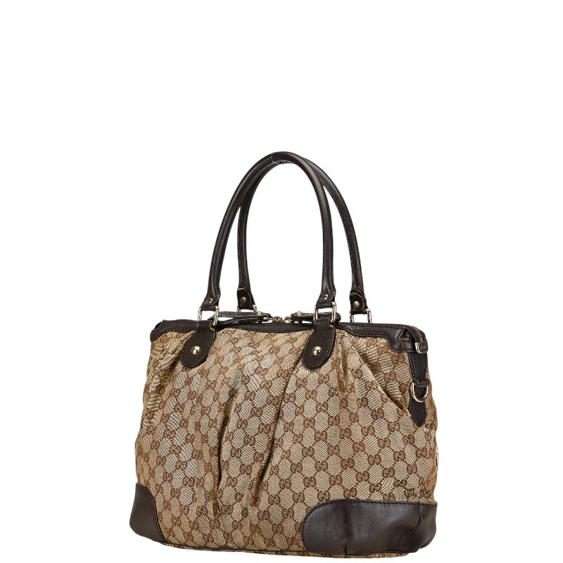 グッチ GGキャンバス トートバッグ ショルダーバッグ 285730 ベージュ ブラウン キャンバス レザー レディース GUCCI 【中古】