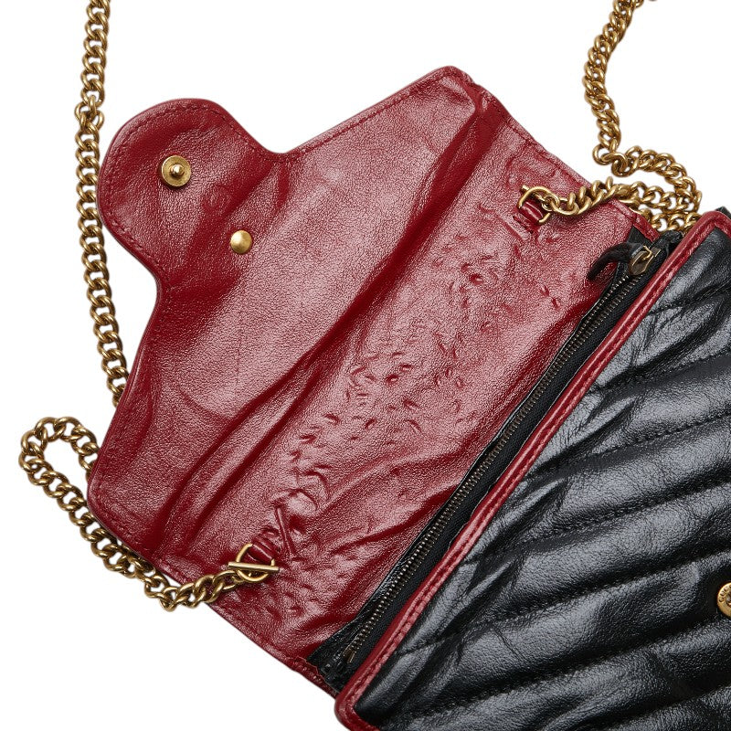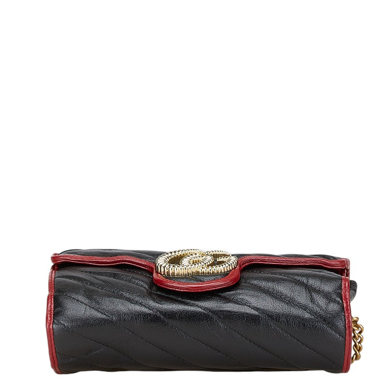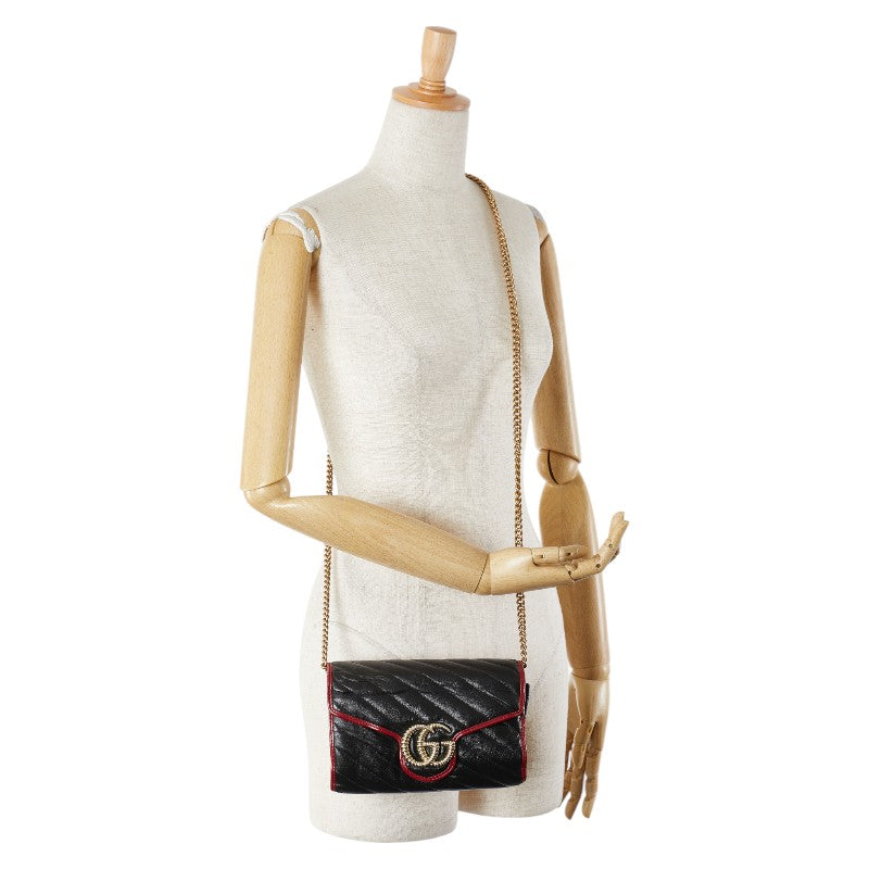 グッチ GGマーモント チェーン ショルダーバッグ 573807 ブラック レッド レザー レディース GUCCI 【中古】