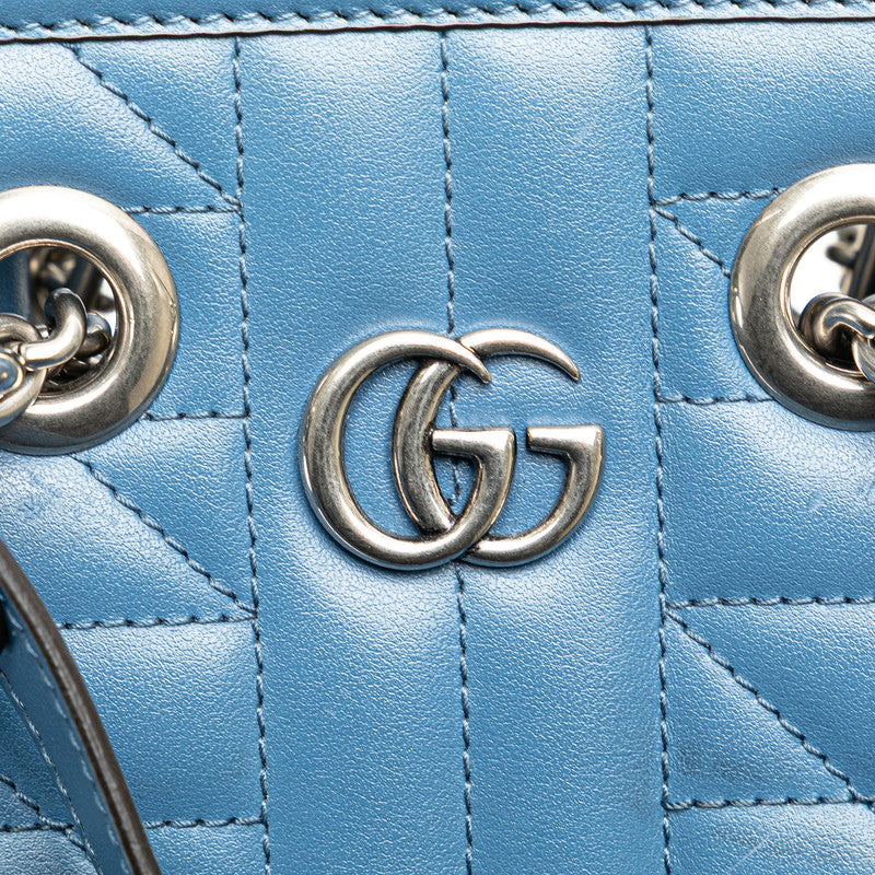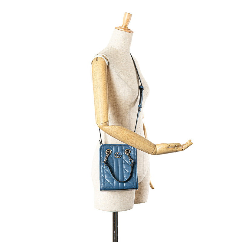 グッチ GGマーモント キルティング ミニ ハンドバッグ ショルダーバッグ 2WAY 696123 ブルー レザー レディース GUCCI 【中古】
