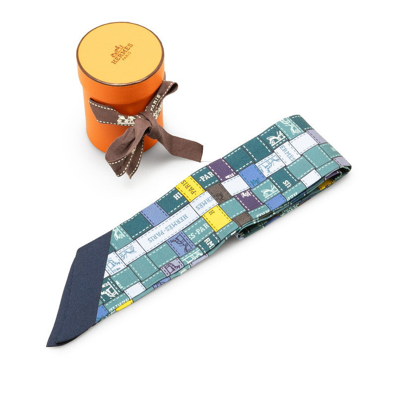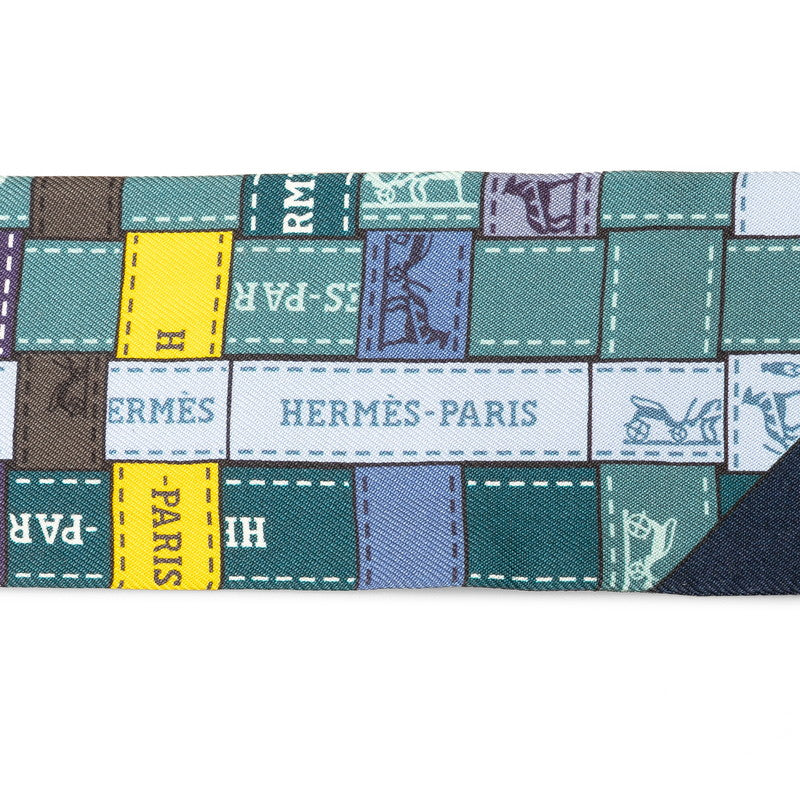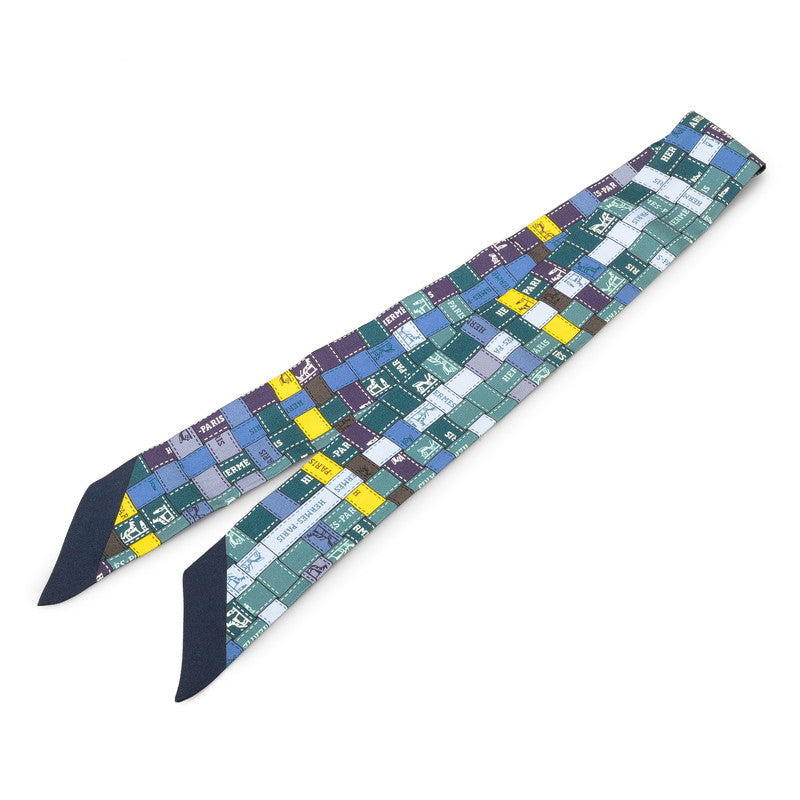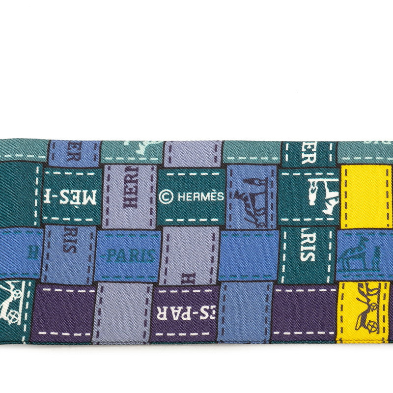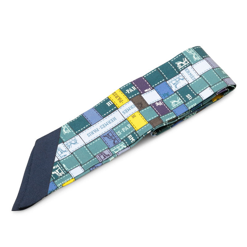エルメス ツイリー ボルデュック スカーフ ネイビー イエロー マルチカラー シルク レディース HERMES 【中古】