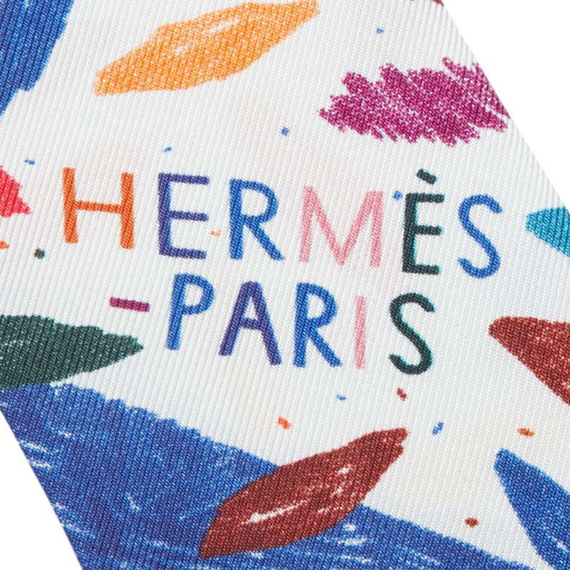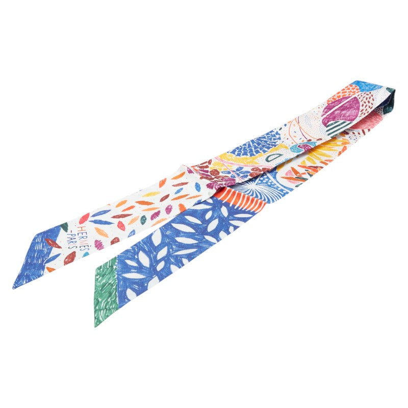 エルメス ツイリー 鳥 バード 植物 リーフ モチーフ スカーフ ホワイト ブルー マルチカラー シルク レディース HERMES 【中古】