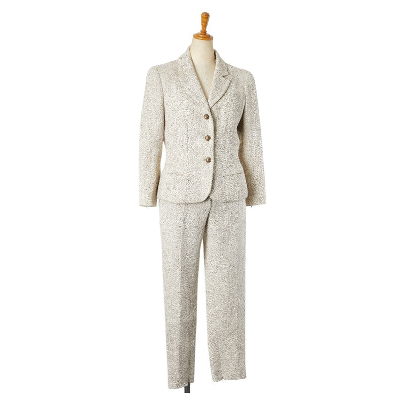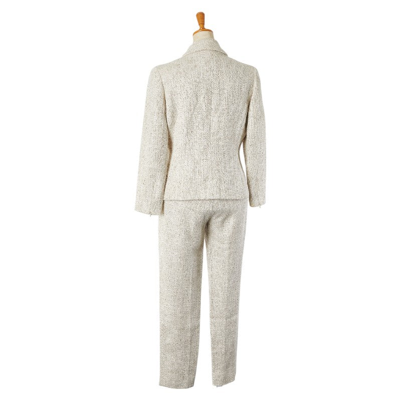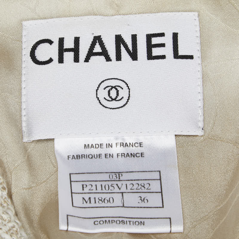 シャネル ツイード ココマークボタン ジャケット パンツ セットアップ ベージュ リネン コットン レディース CHANEL 【中古】