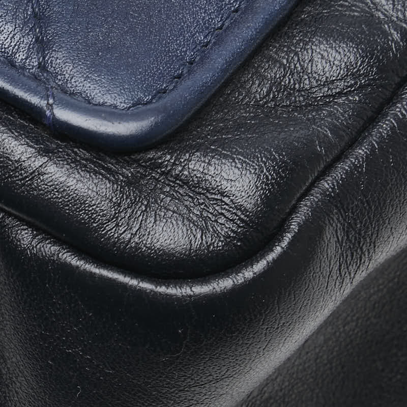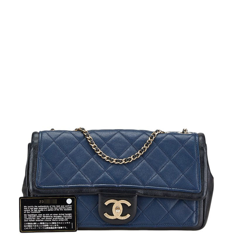 シャネル ココマーク マトラッセ バイカラー チェーン ショルダーバッグ ネイビー ブラック ラムスキン レディース CHANEL 【中古】