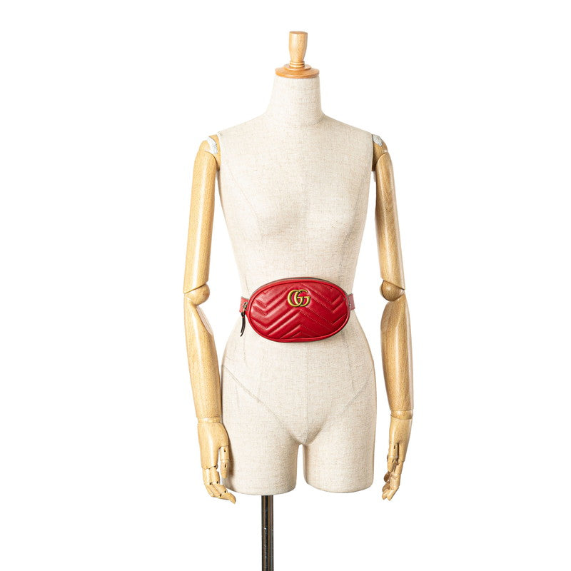 グッチ GGマーモント キルティング ウエストバッグ ボディバッグ 476434 レッド ゴールド レザー レディース GUCCI 【中古】