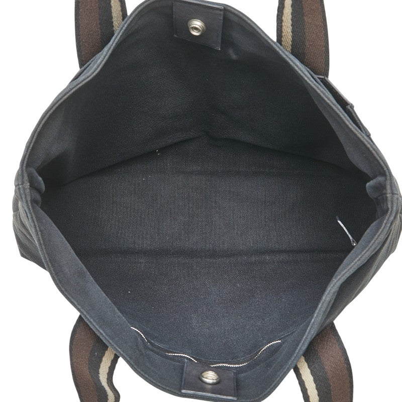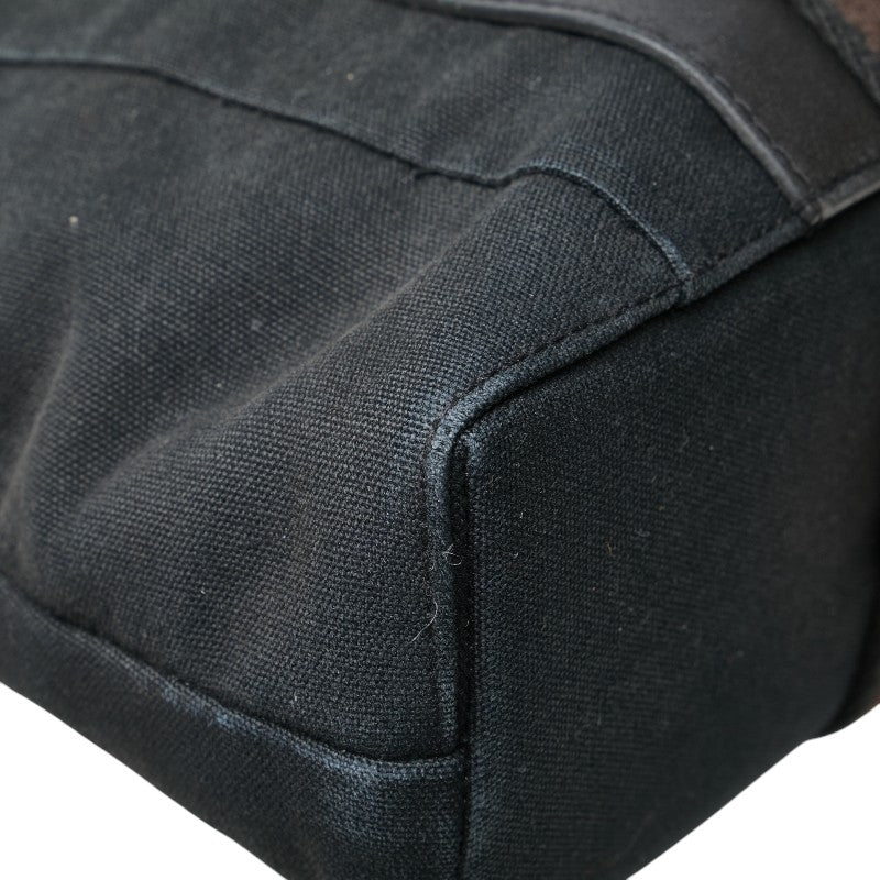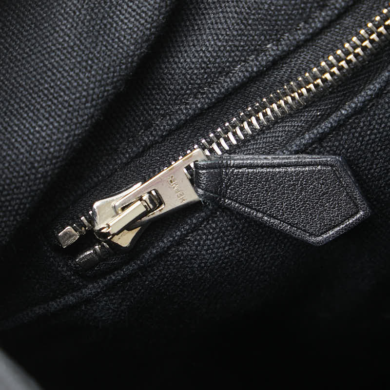 エルメス トロカホリゾンタルMM ハンドバッグ ブラック キャンバス レザー レディース HERMES 【中古】
