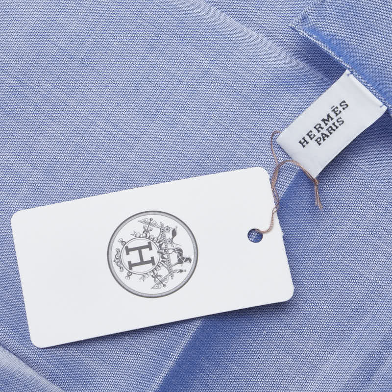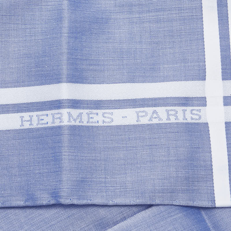 エルメス ロゴ ハンカチ ブルー コットン メンズ HERMES 【中古】