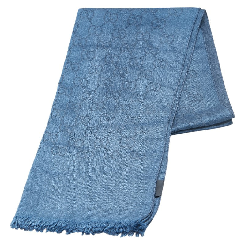 グッチ GGウール ストール ブルー ネイビー ウール レディース GUCCI 【中古】