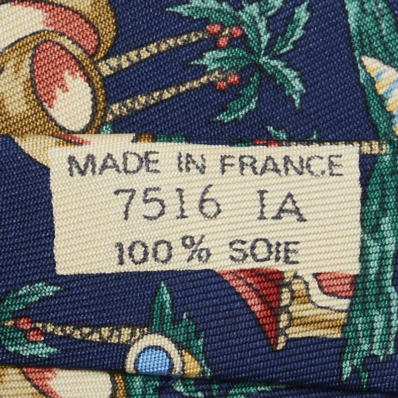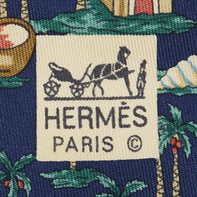 エルメス ヤシの木 ココナッツ ネクタイ ネイビー グリーン マルチカラー シルク メンズ HERMES 【中古】