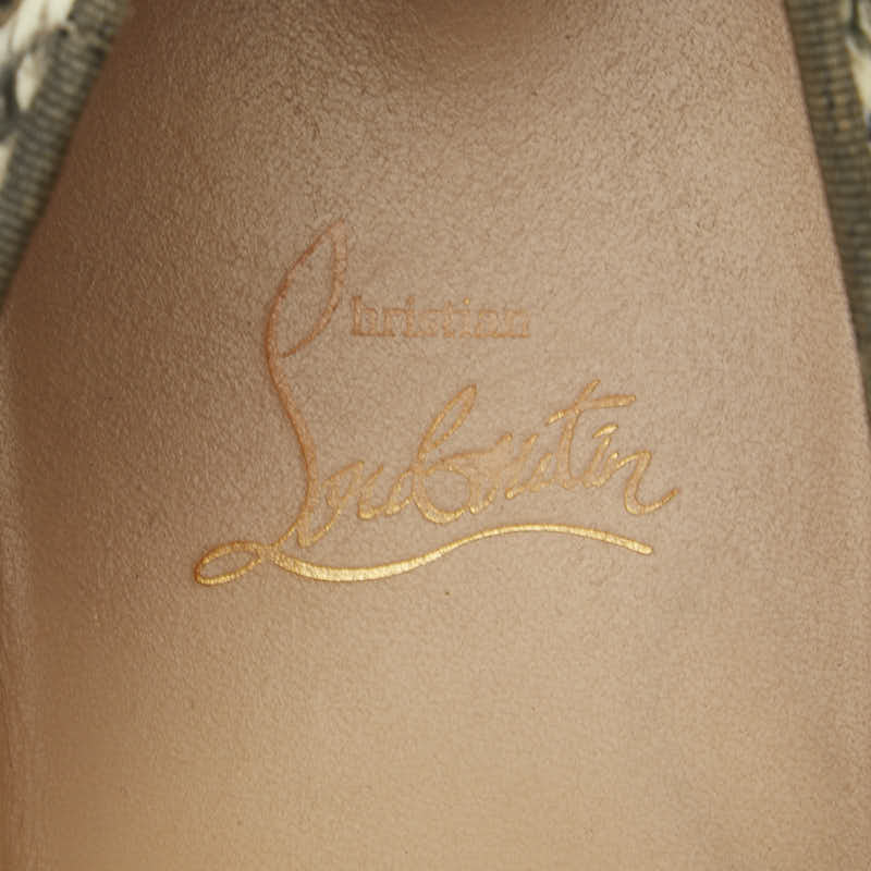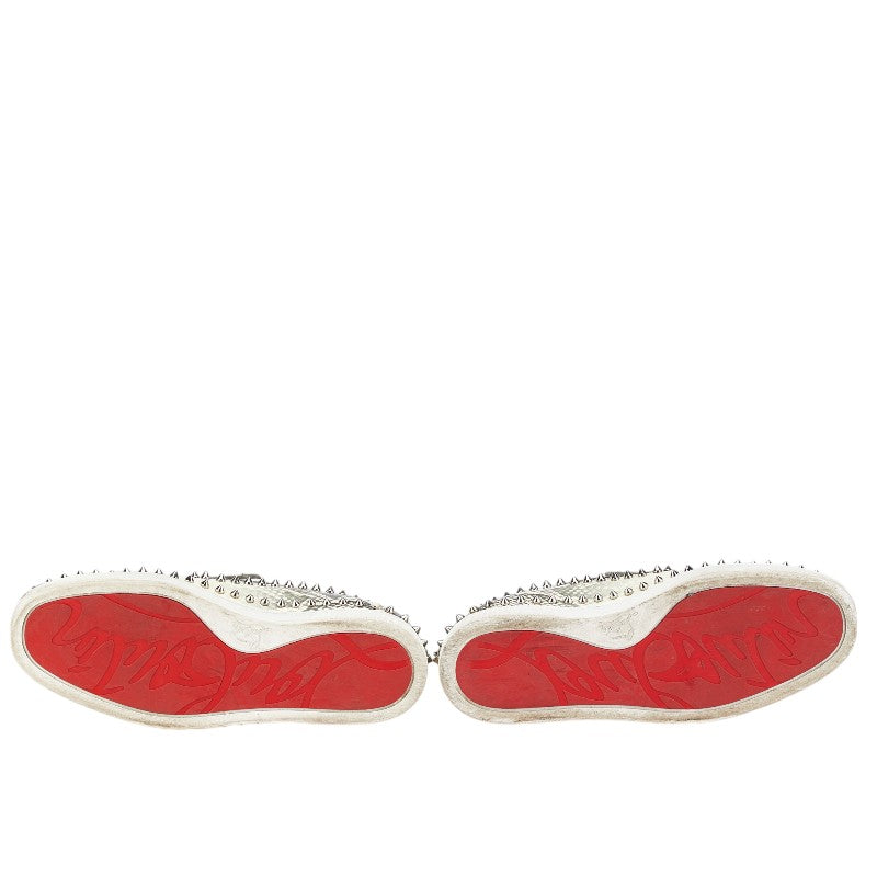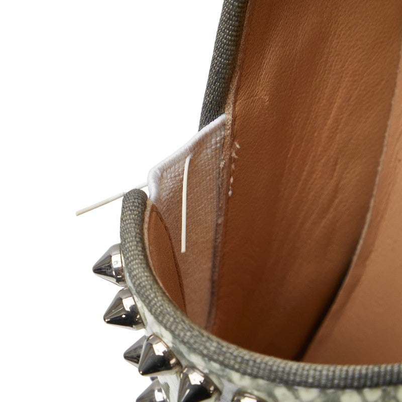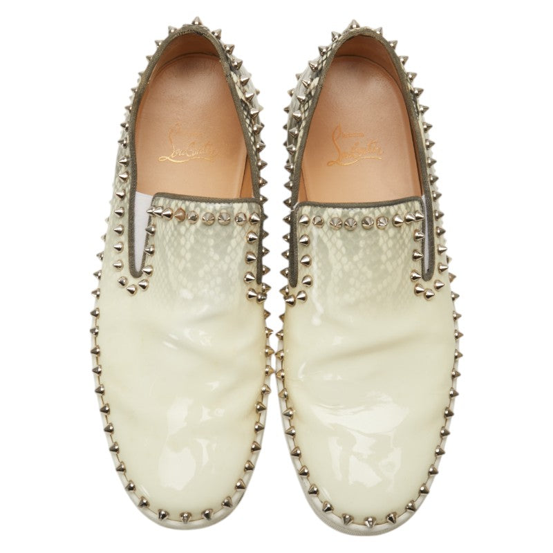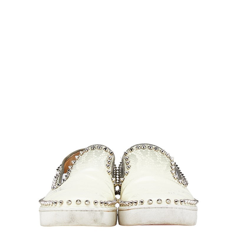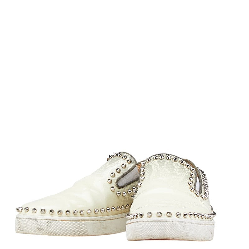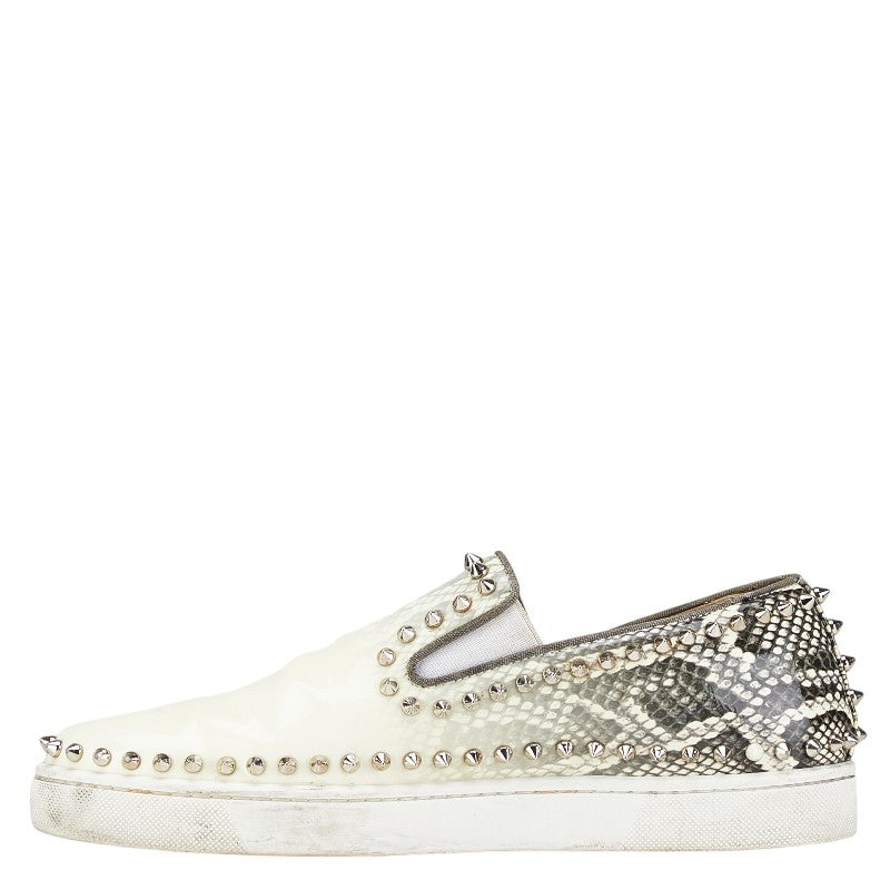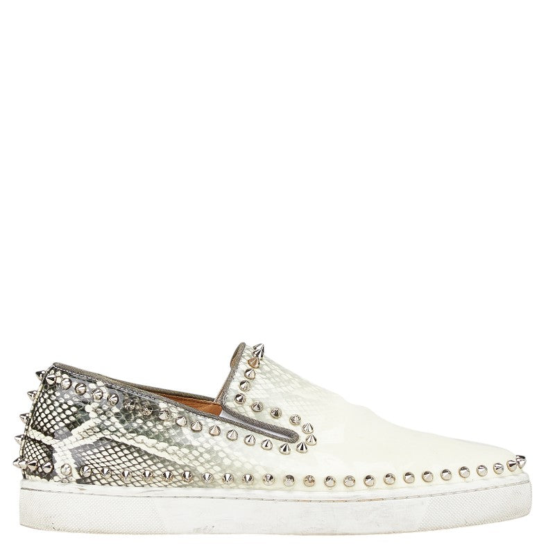 クリスチャンルブタン パイソン プリント スパイク スタッズ スリッポン サイズ:41 1/2 ホワイト グレー レザー エナメル メンズ Christian Louboutin 【中古】