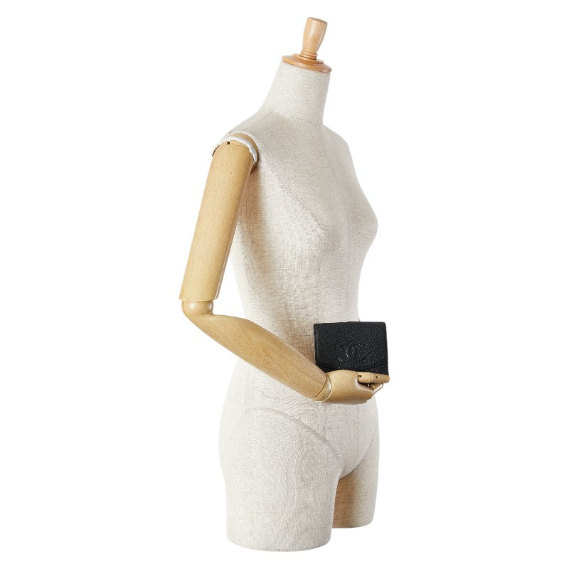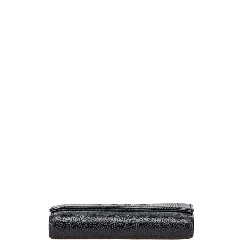 シャネル ココマーク 三つ折り財布 コンパクトウォレット ブラック キャビアスキン レディース CHANEL 【中古】