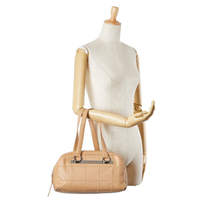 シャネル チョコバー ミニボストンバッグ ワンショルダーバッグ A26135 ベージュ キャビアスキン レディース CHANEL 【中古】
