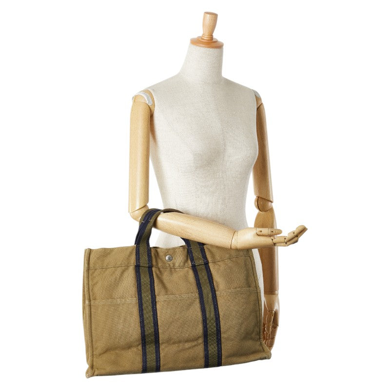 エルメス フールトゥ トートMM トートバッグ カーキ ネイビー キャンバス レディース HERMES 【中古】