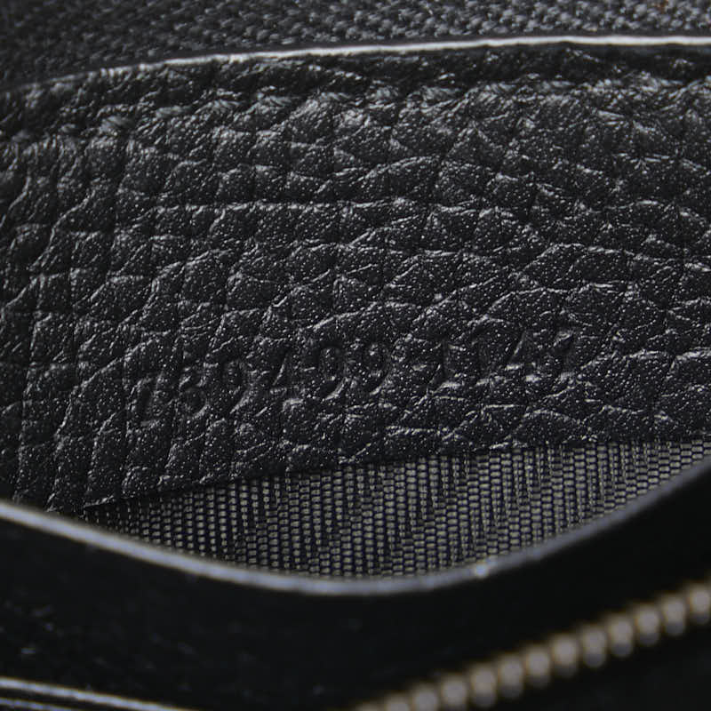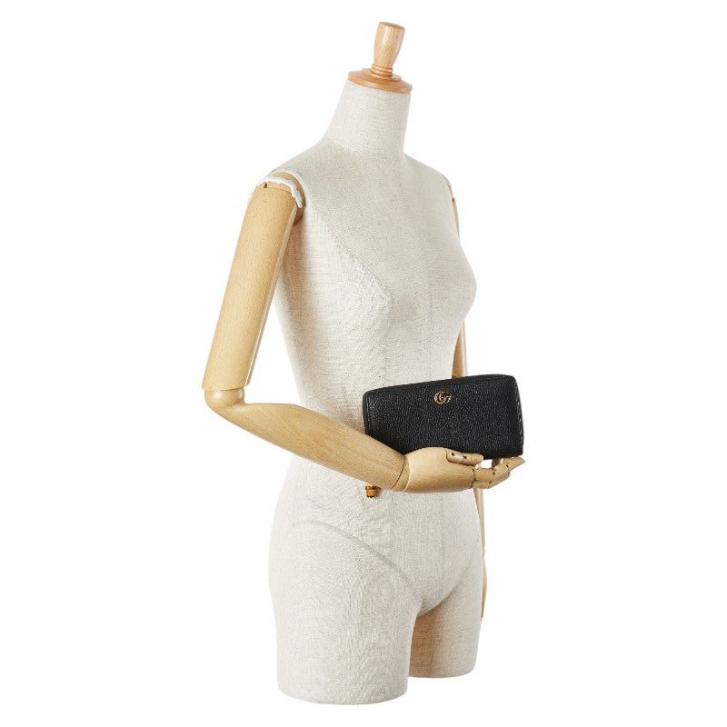グッチ GGマーモント バンブー ラウンドファスナー ロングウォレット 長財布 739499 ブラック レザー レディース GUCCI 【中古】