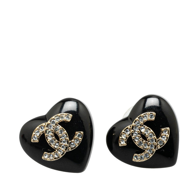 シャネル ココマーク ラインストーン ハート ピアス ブラック メタル プラスチック レディース CHANEL 【中古】