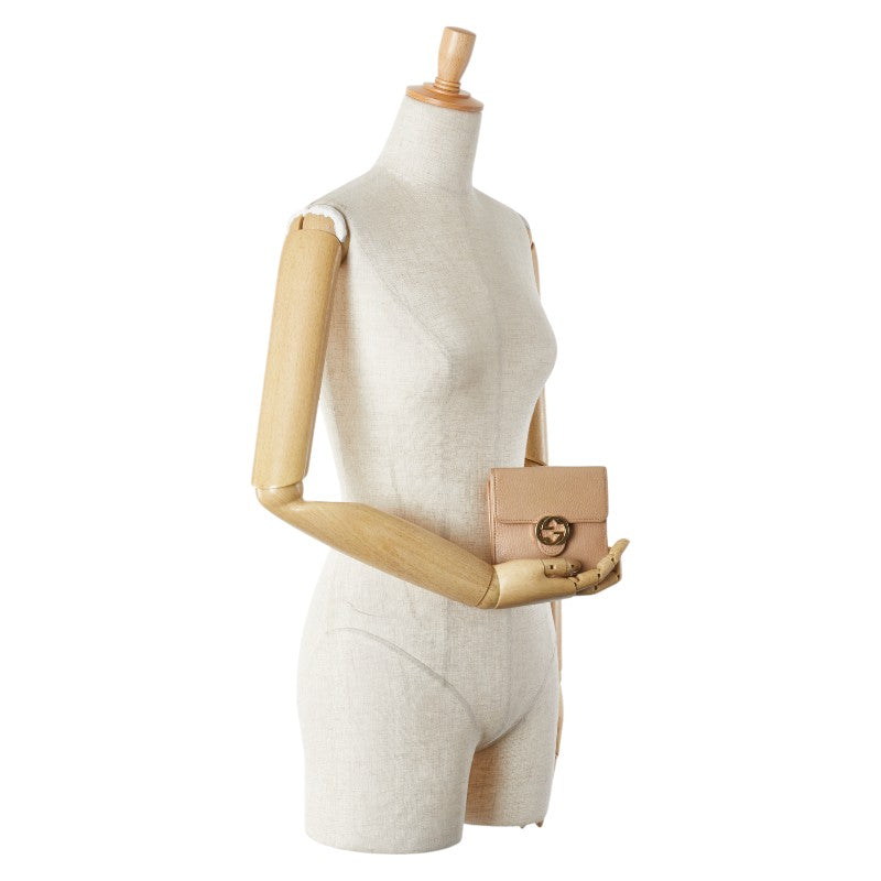 グッチ インターロッキング 三つ折り財布 615525 ベージュ レザー レディース GUCCI 【中古】