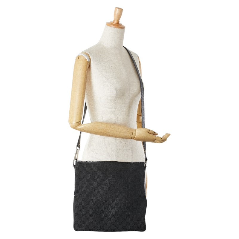 グッチ GGキャンバス 斜め掛け ショルダーバッグ 113013 ブラック キャンバス レザー レディース GUCCI 【中古】