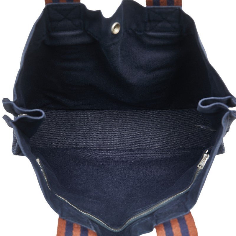 エルメス フールトゥMM ハンドバッグ トートバッグ ネイビー ブラウン キャンバス レディース HERMES 【中古】