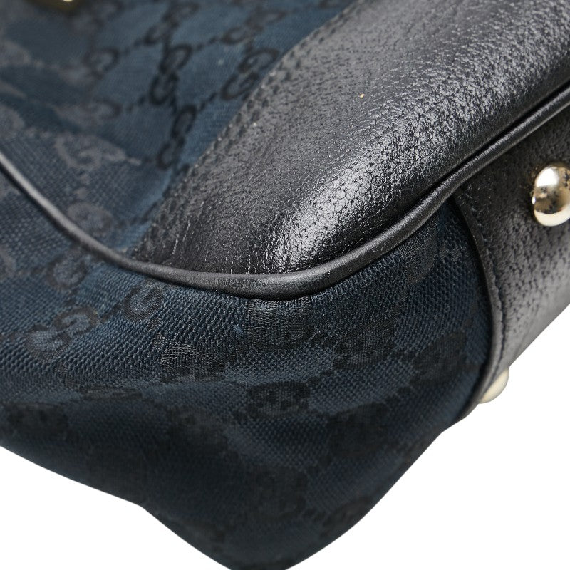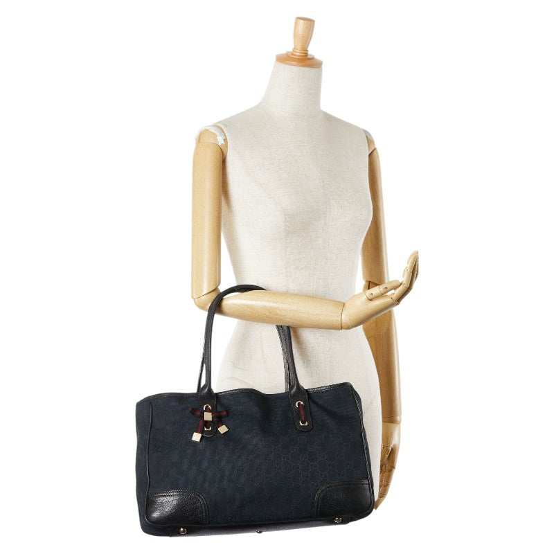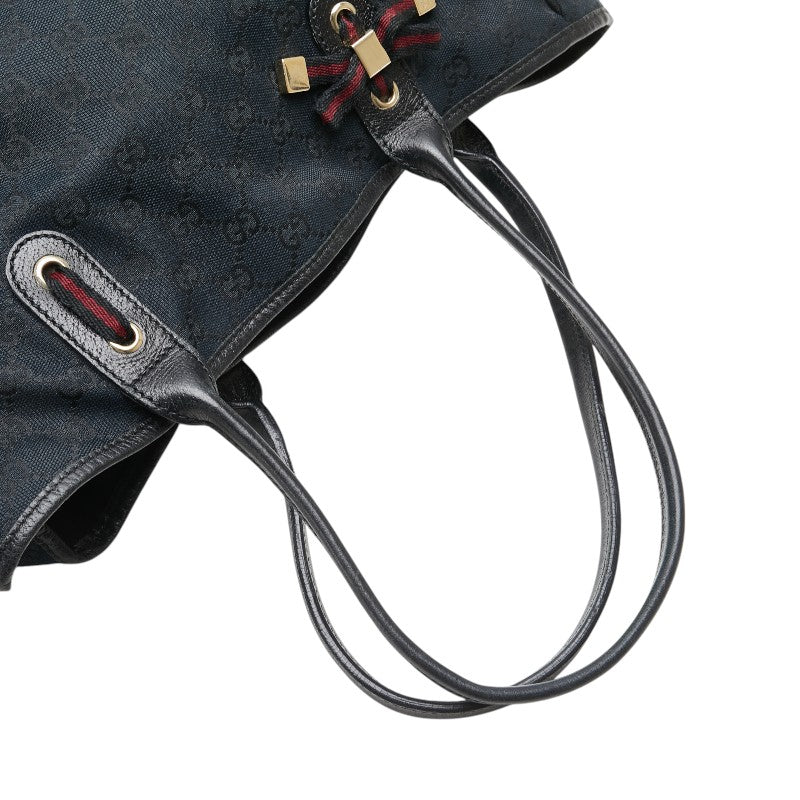 グッチ GGキャンバス プリンシー リボン トートバッグ 163805 ネイビー ブラック キャンバス レザー レディース GUCCI 【中古】