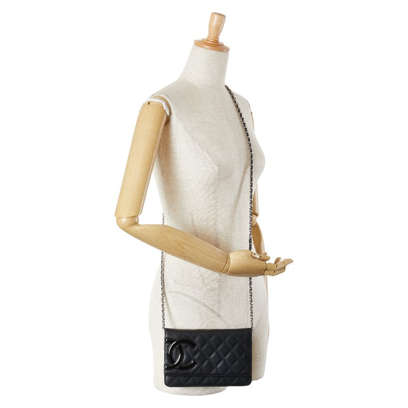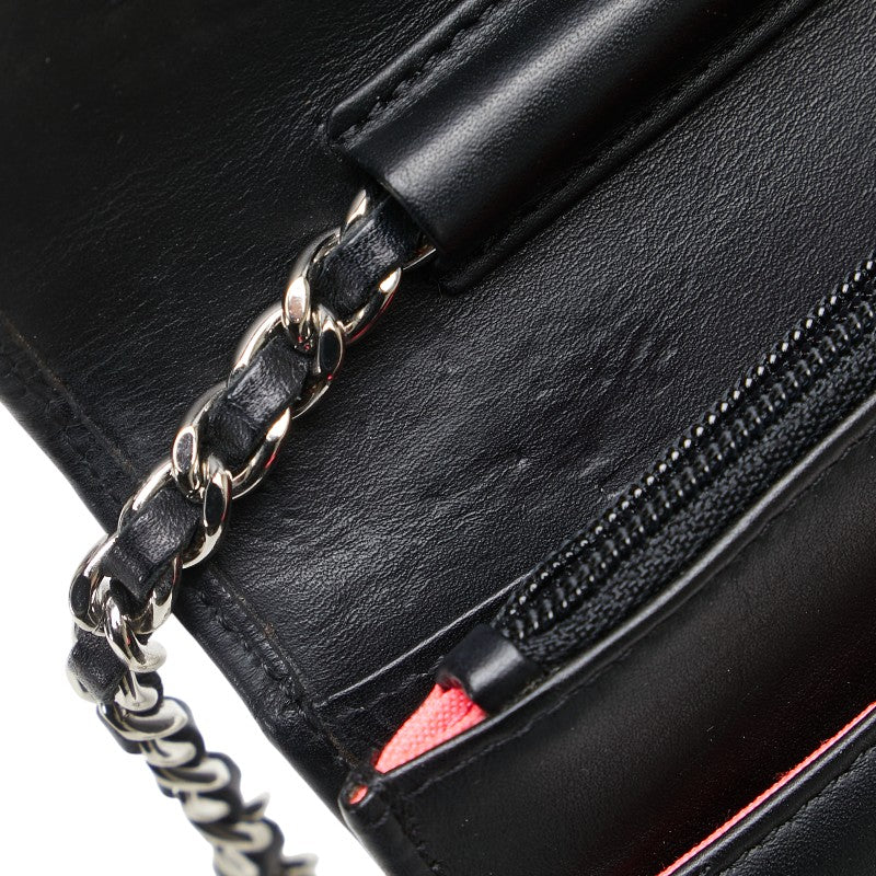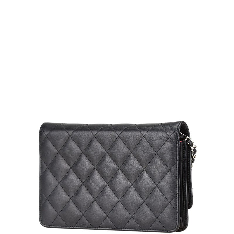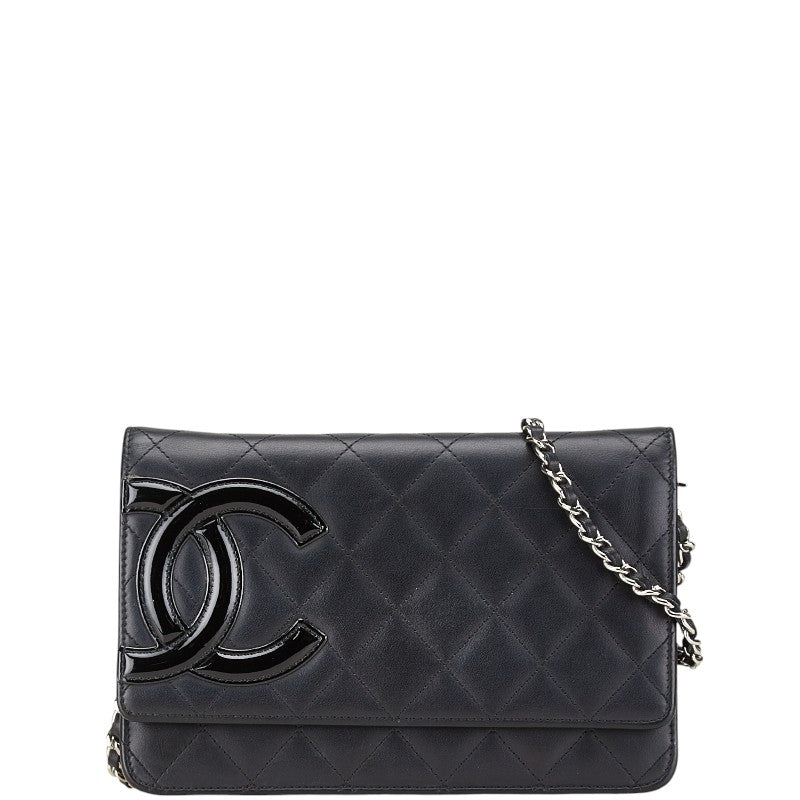 シャネル カンボンライン ココマーク チェーン ショルダーバッグ ウォレットチェーン ブラック ラムスキン エナメル レディース CHANEL 【中古】
