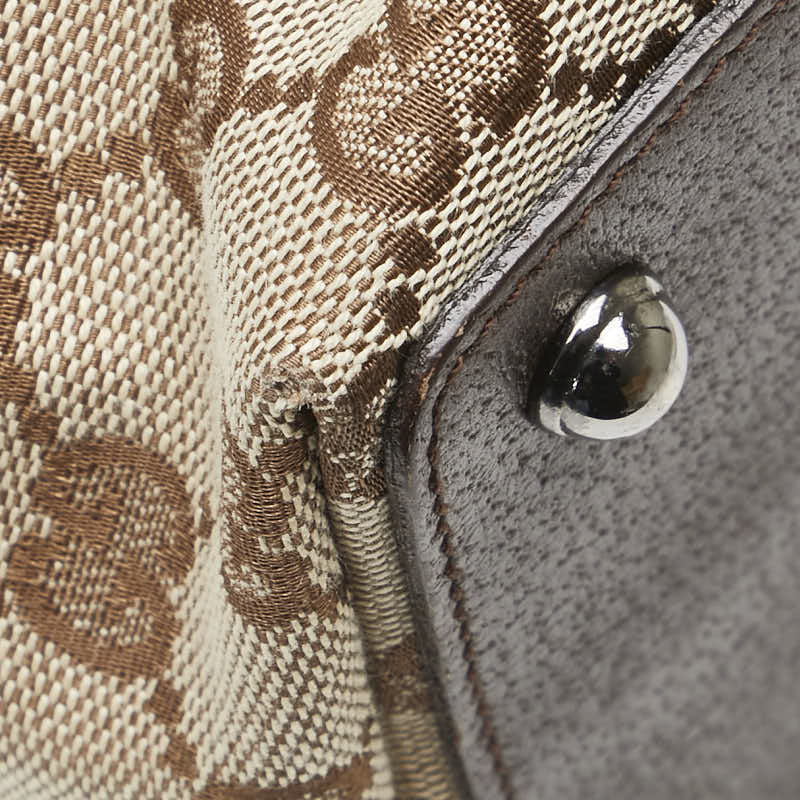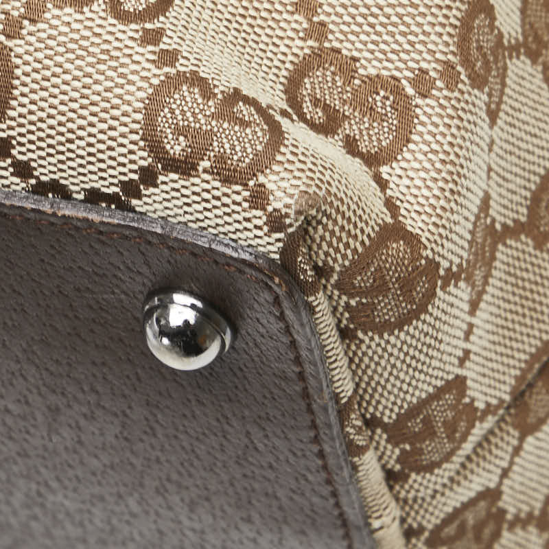 グッチ GGキャンバス トートバッグ 120836 ベージュ ブラウン キャンバス レザー レディース GUCCI 【中古】