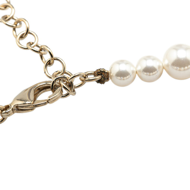 シャネル ココマーク ロゴ ネックレス ゴールド ブルー フェイクパール メッキ レディース CHANEL 【中古】
