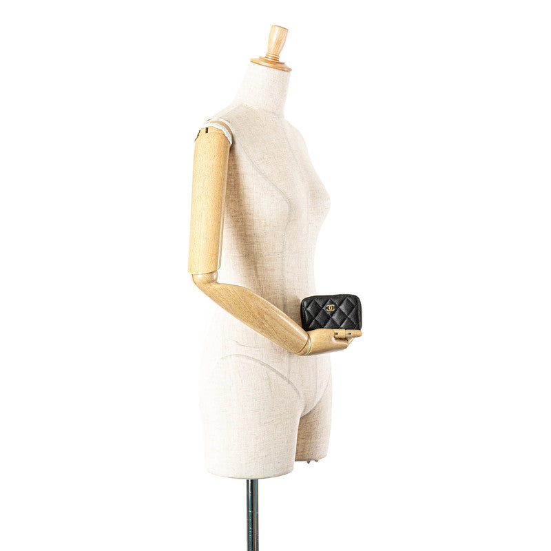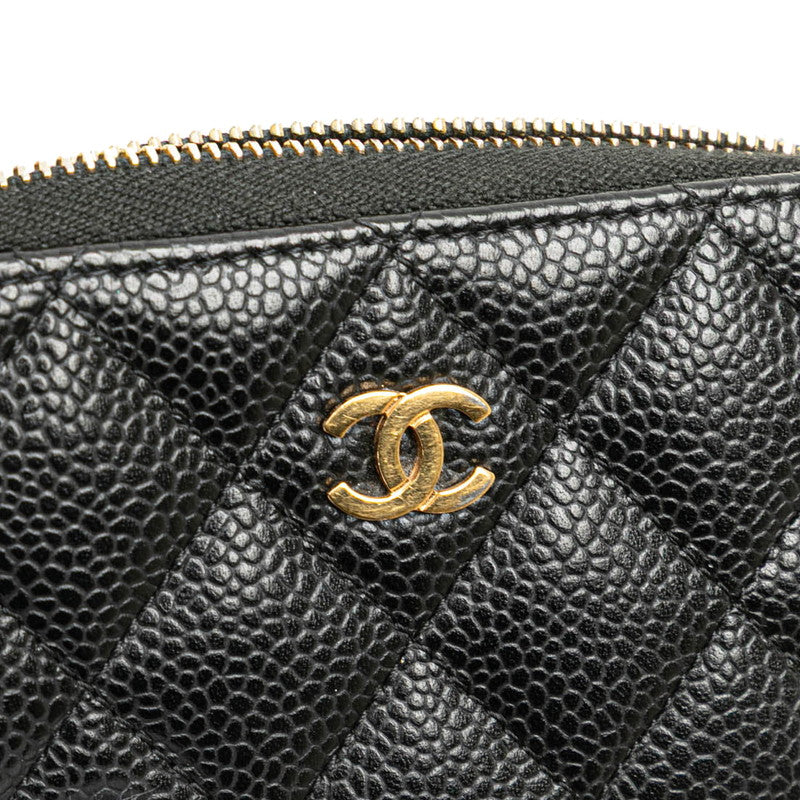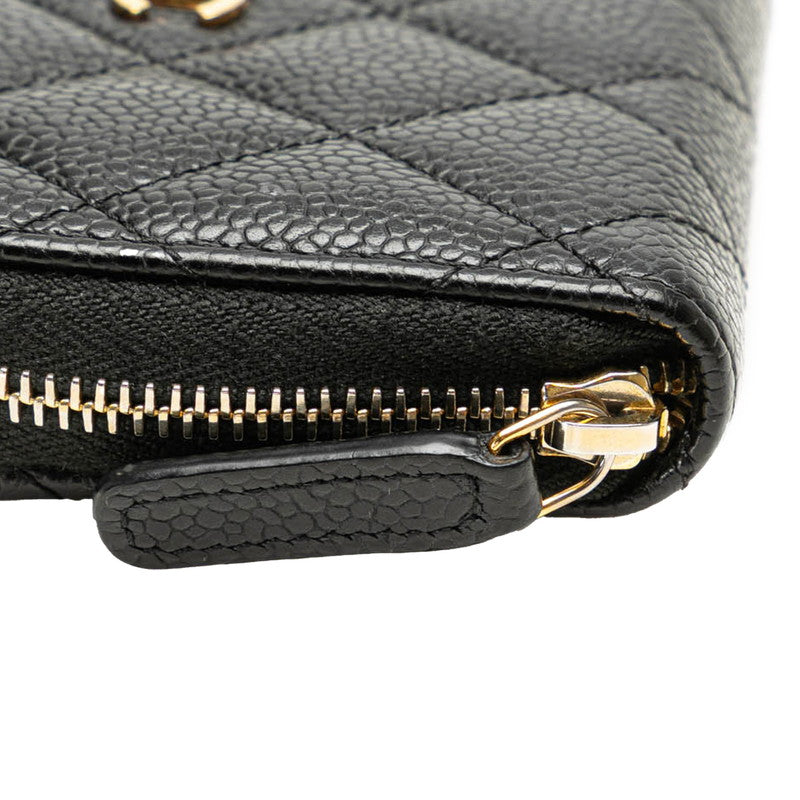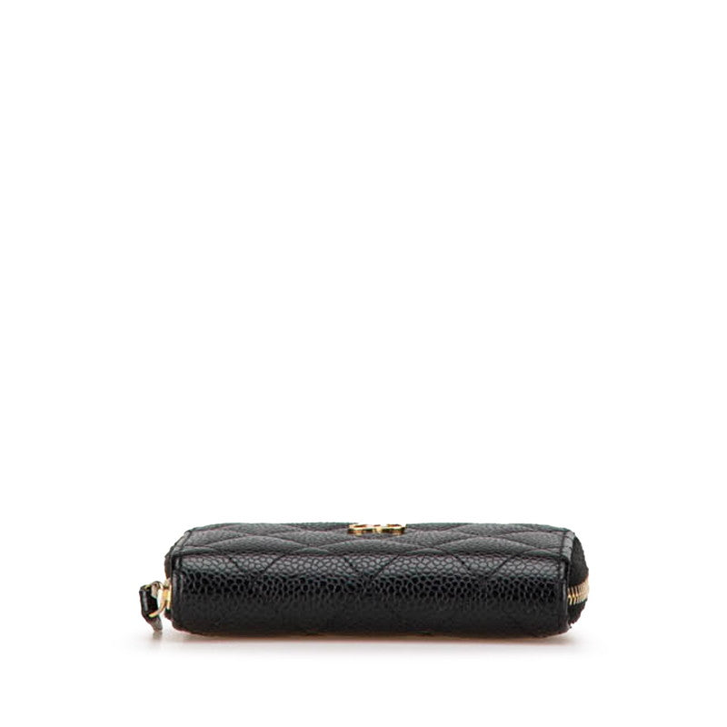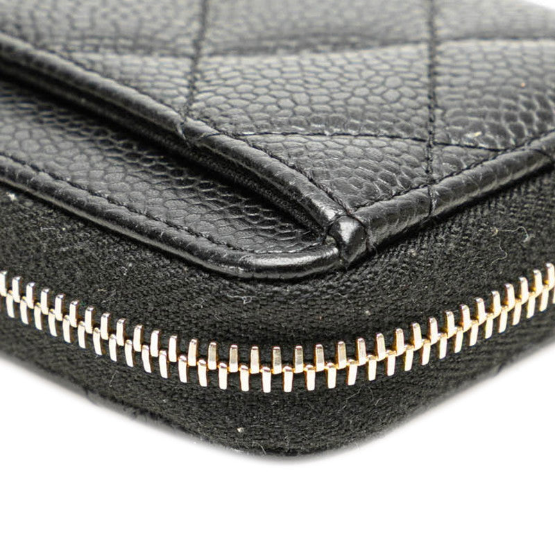シャネル クラシック ジップ コインパース ラウンドファスナー カードケース ブラック キャビアスキン レディース CHANEL 【中古】