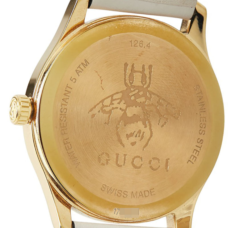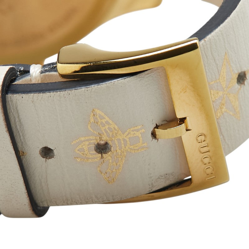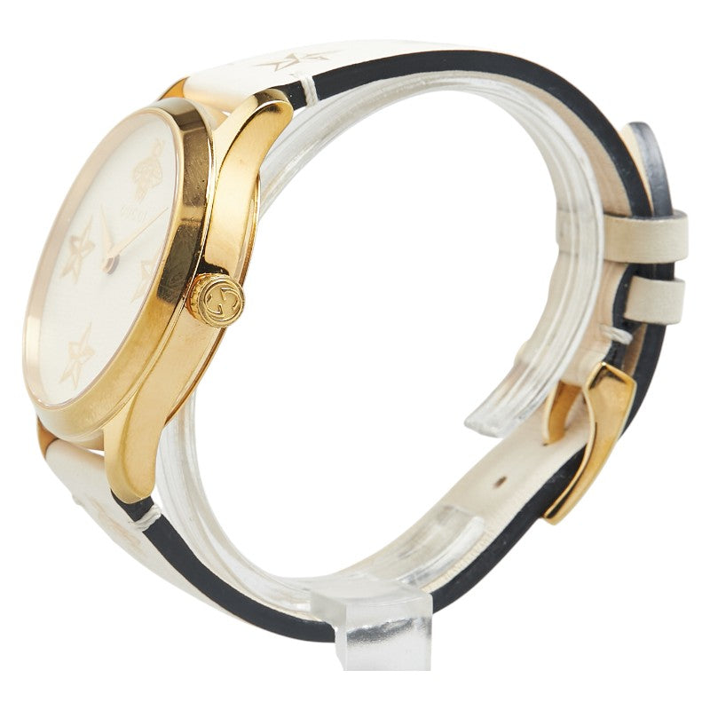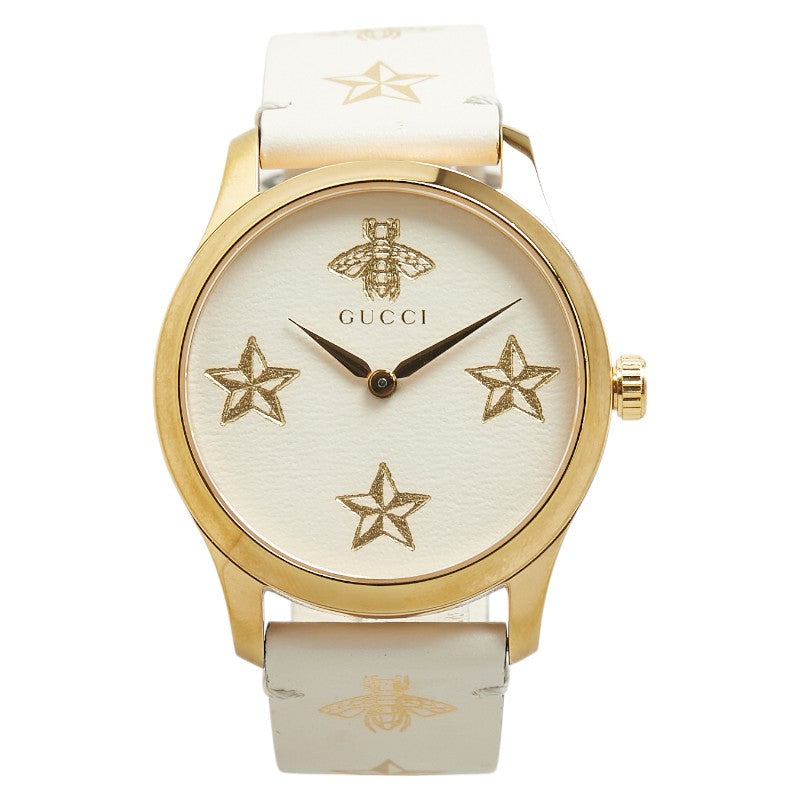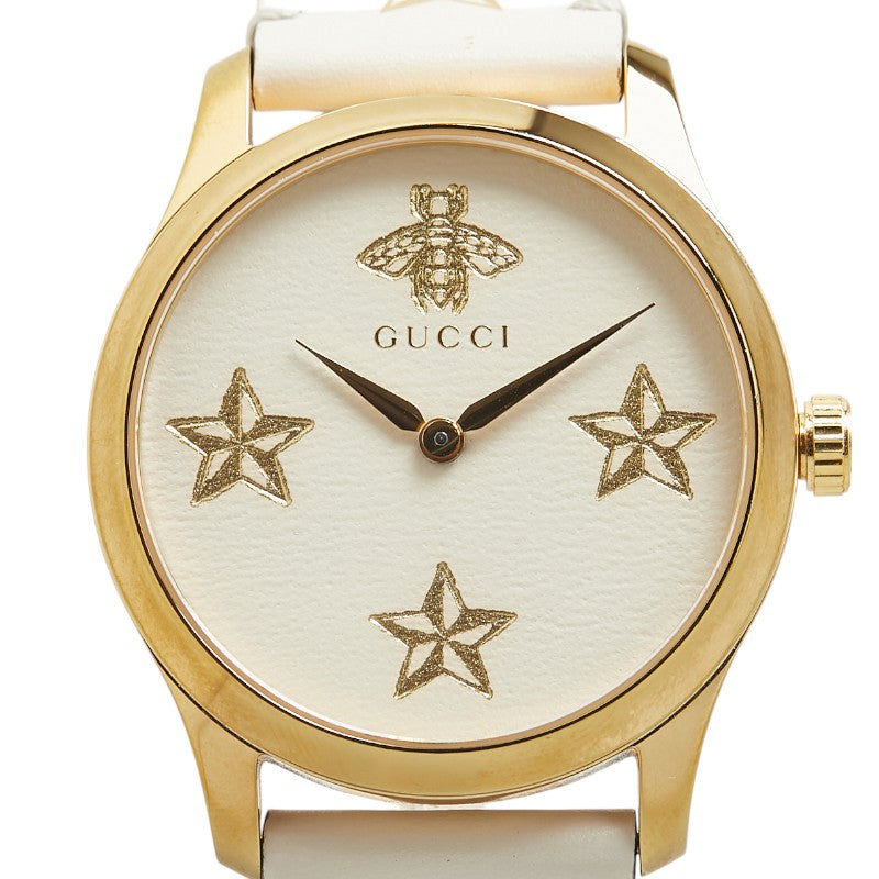 グッチ Gタイムレス 星 スター 蜂 ビー モチーフ 腕時計 126.4 クオーツ ベージュ文字盤 ステンレススチール レザー レディース GUCCI 【中古】