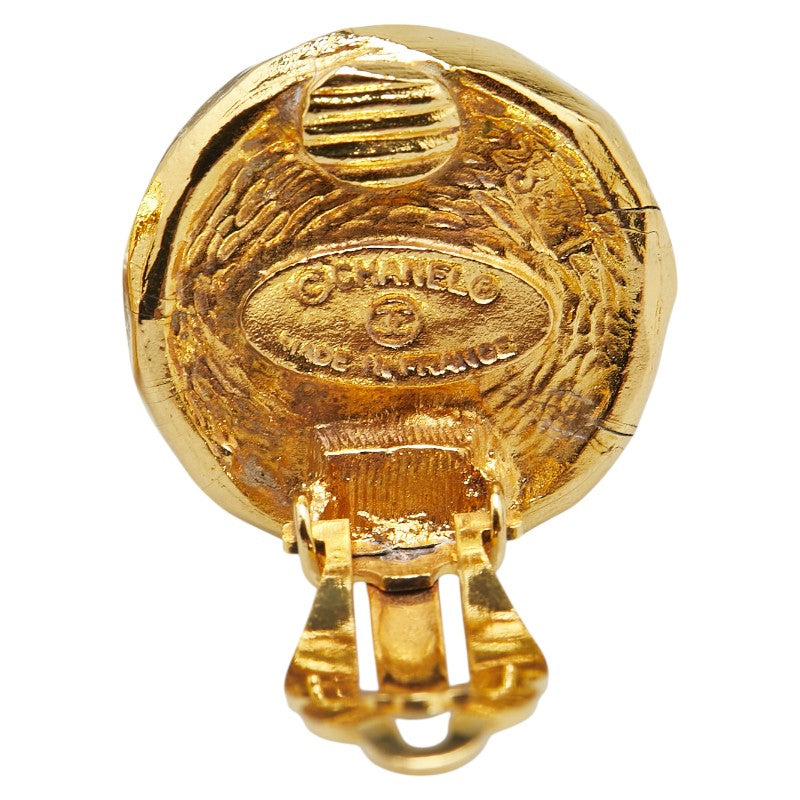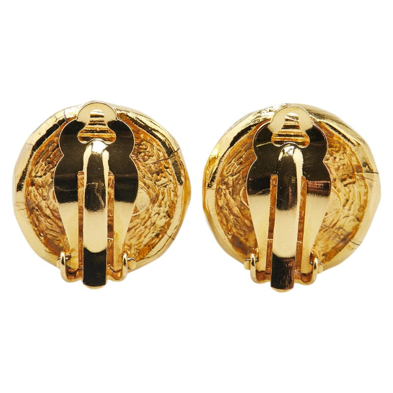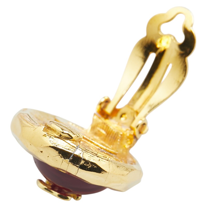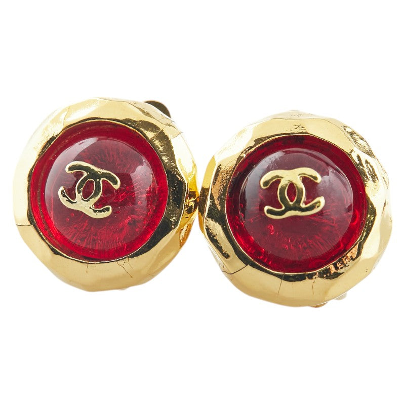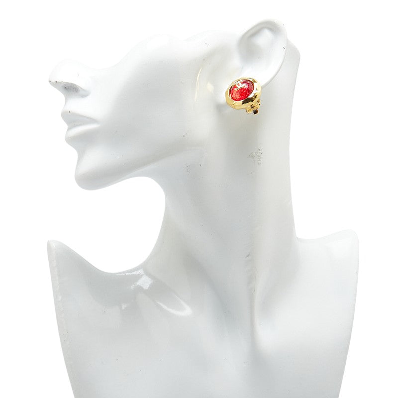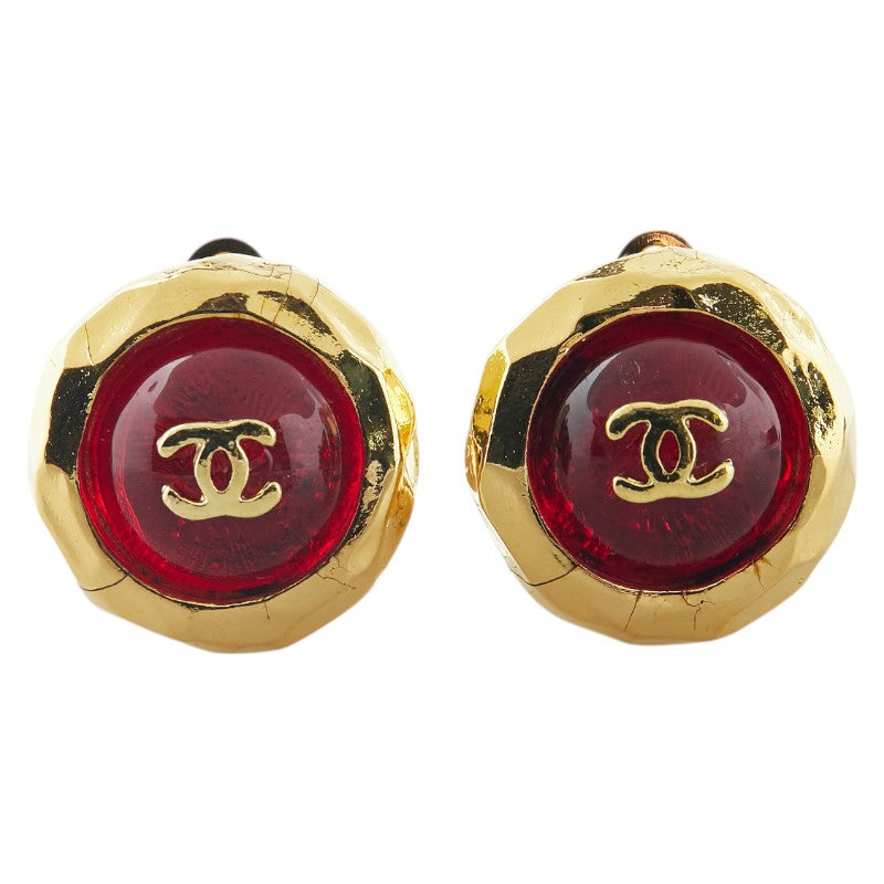 シャネル ココマーク ラウンド グリポア イヤリング ゴールド レッド メッキ レディース CHANEL 【中古】