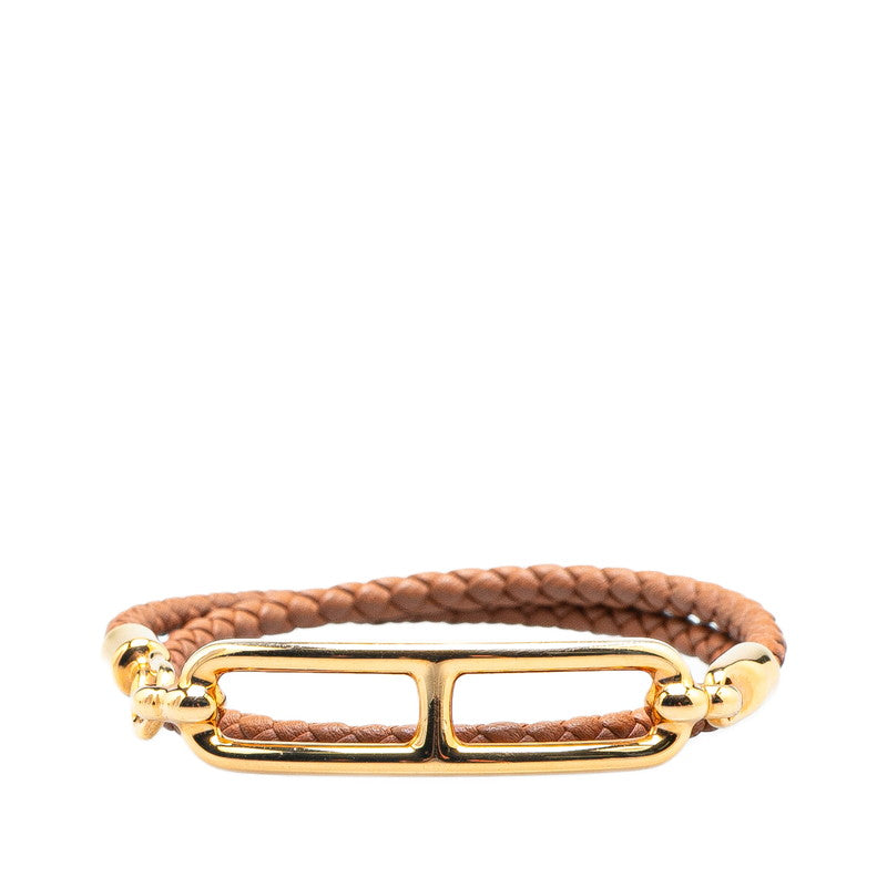 エルメス ルリ ドゥブルトゥール ブレスレット ブラウン ゴールド レザー メッキ レディース HERMES 【中古】