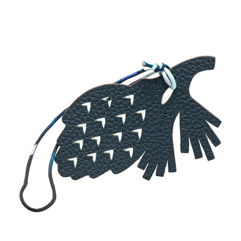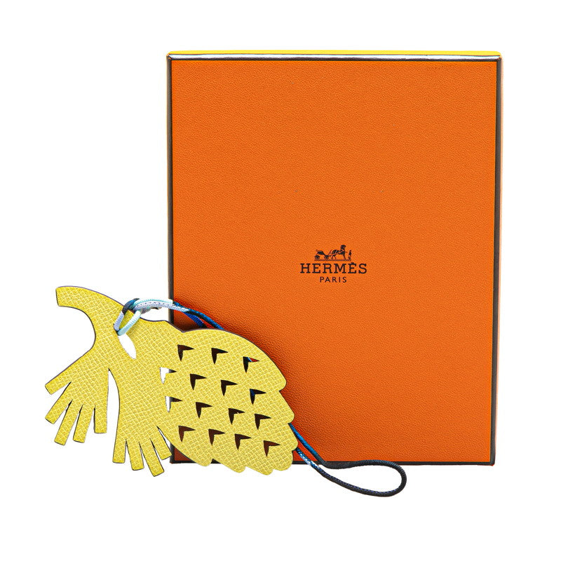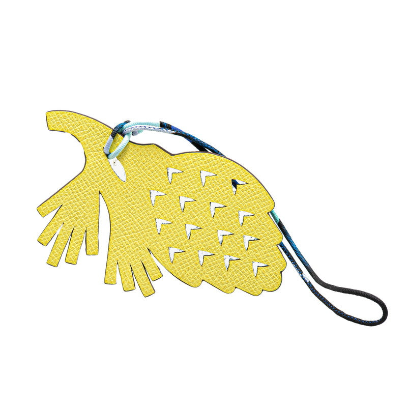 エルメス プティアッシュ 松ぼっくり チャーム バッグチャーム イエロー ブルー ヴォーエプソン トリヨンクレマンス シルク レディース HERMES 【中古】