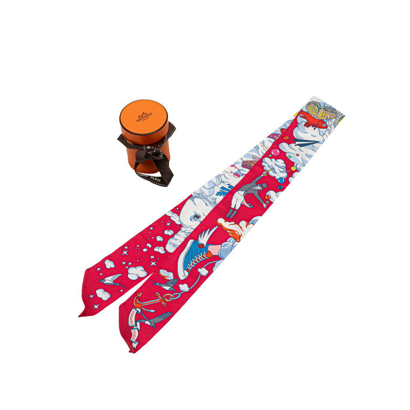 エルメス ツイリー SUR MON NUAGE 私の雲 スカーフ レッド マルチカラー シルク レディース HERMES 【中古】
