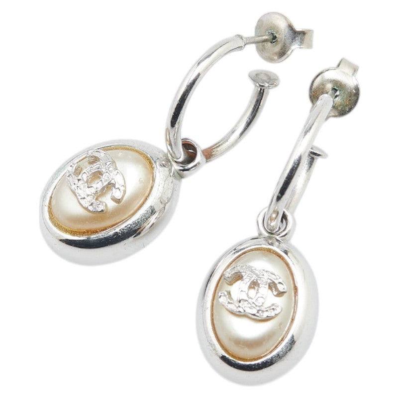 シャネル ココマーク フープ ピアス シルバー メタル フェイクパール レディース CHANEL 【中古】