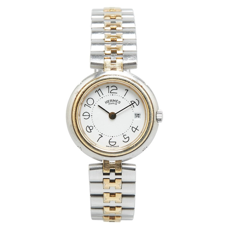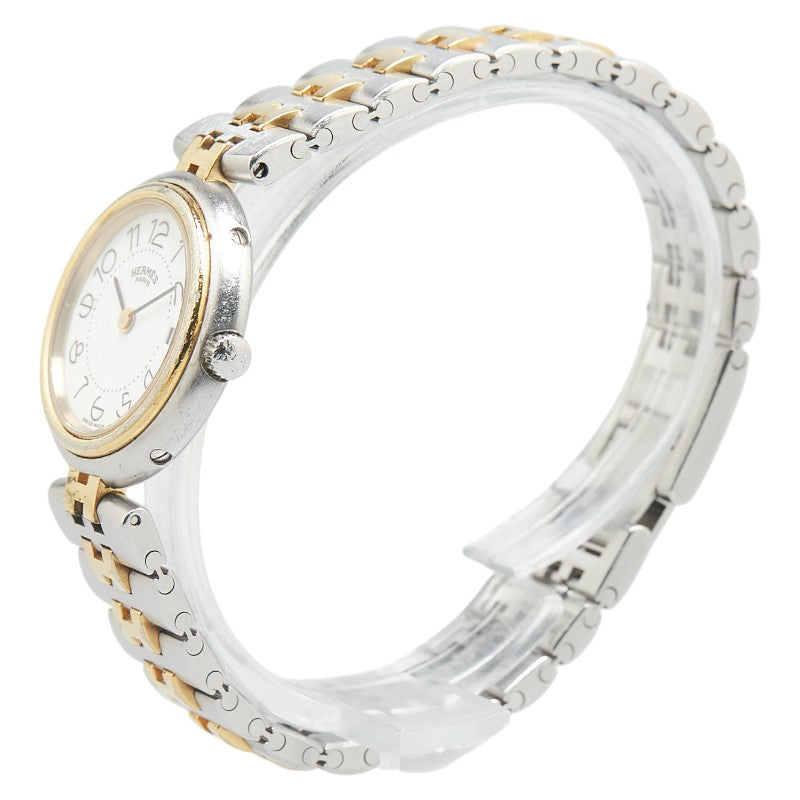 エルメス プロフィール 腕時計 クオーツ ホワイト文字盤 ステンレススチール メッキ レディース HERMES 【中古】